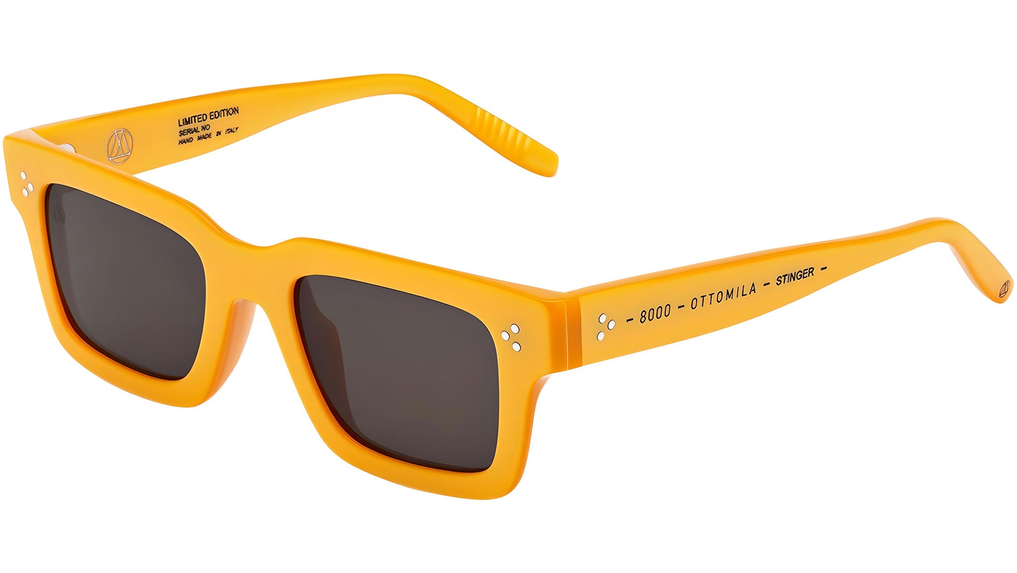 Stinger è un occhiale da sole senza tempo senza tempo creato per il marchio italo-americano di alta gamma Ottomila. Questa silhouette geometrica essenziale si distingue per una costruzione in acetato spesso e robusto. Ispirato ai film noir italiani degli anni '50, il modello emana un’energia misteriosa, con le aste sporgenti e le linee nette. Le montature sono scolpite con cura sui lati, mettendo in evidenza l’attenzione meticolosa e ossessiva ai dettagli che caratterizza Ottomila. Questa versione aggiornata presenta una finitura gialla audace, con iscrizioni sulla parte esterna della montatura e lenti nere fumé. Disponibile nella misura R, con larghezza lente di 50 mm e lunghezza delle aste di 145 mm. Codice prodotto: 2H7.