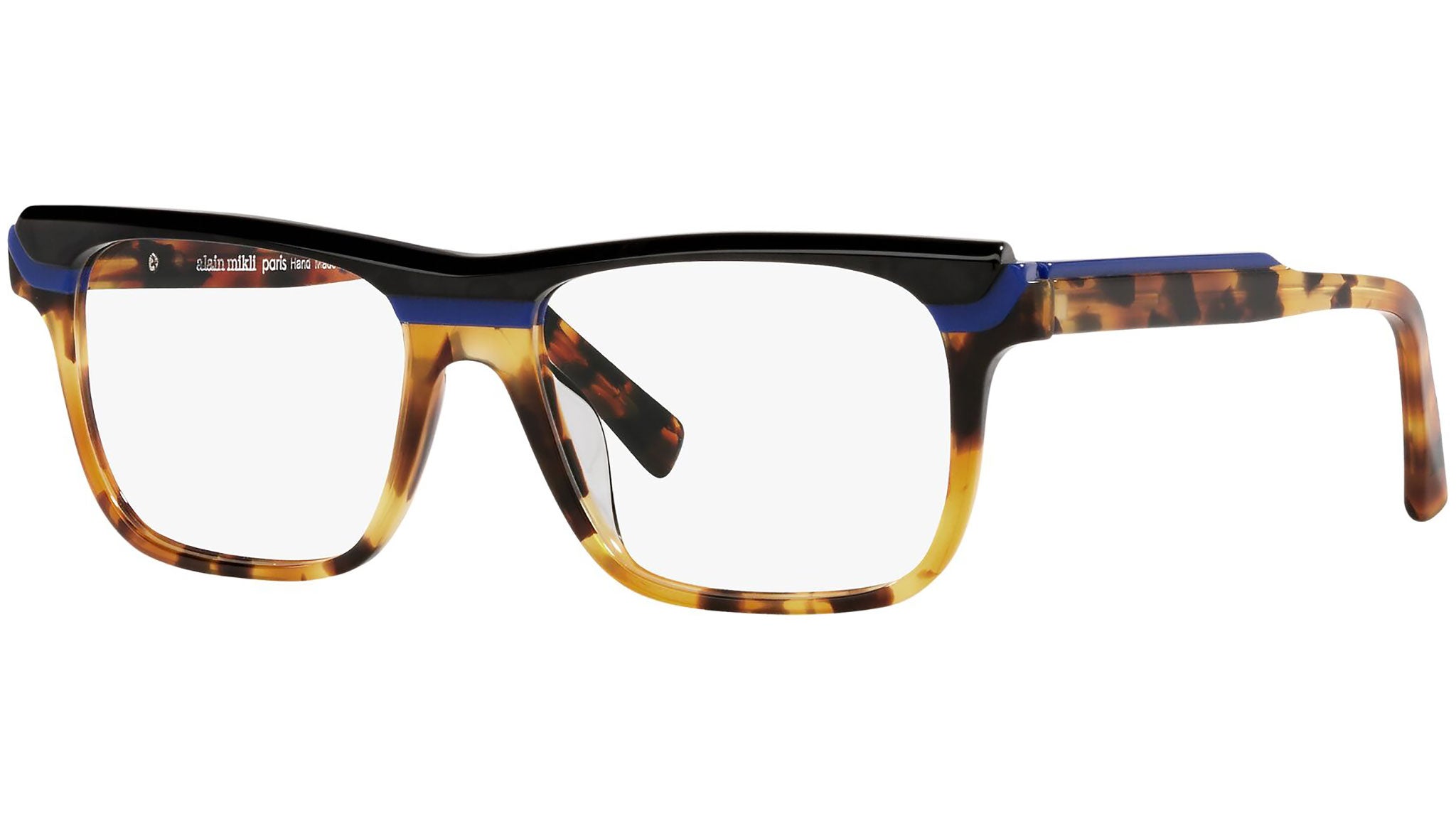 Occhiali da vista Alain Mikli modello A03126 variante colore avana / blu / nero Mikli, codice colore 004. Alain Mikli è stato il primo marchio a sostenere l’idea di occhiale come accessorio. Dalla fusione di arte e moda nascono montature da sempre sinonimo di unicità e provocazione, contraddistinte per il design originale e le combinazioni di colori esclusive.
