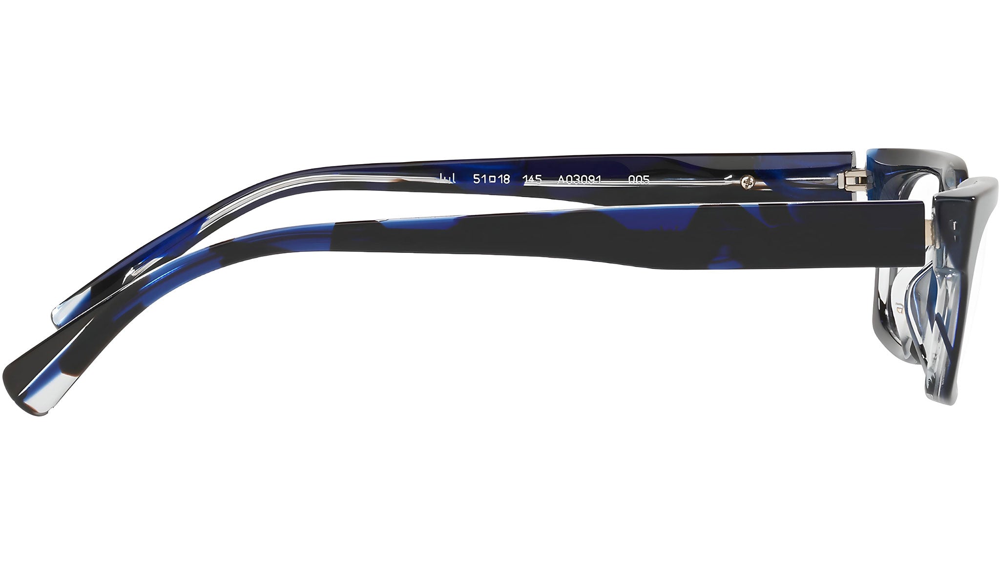 Occhiali da vista Alain Mikli modello 0A03091 variante colore top blu blu e fili, codice colore 005. Alain Mikli è stato il primo marchio a sostenere l’idea di occhiale come accessorio. Dalla fusione di arte e moda nascono montature da sempre sinonimo di unicità e provocazione, contraddistinte per il design originale e le combinazioni di colori esclusive.