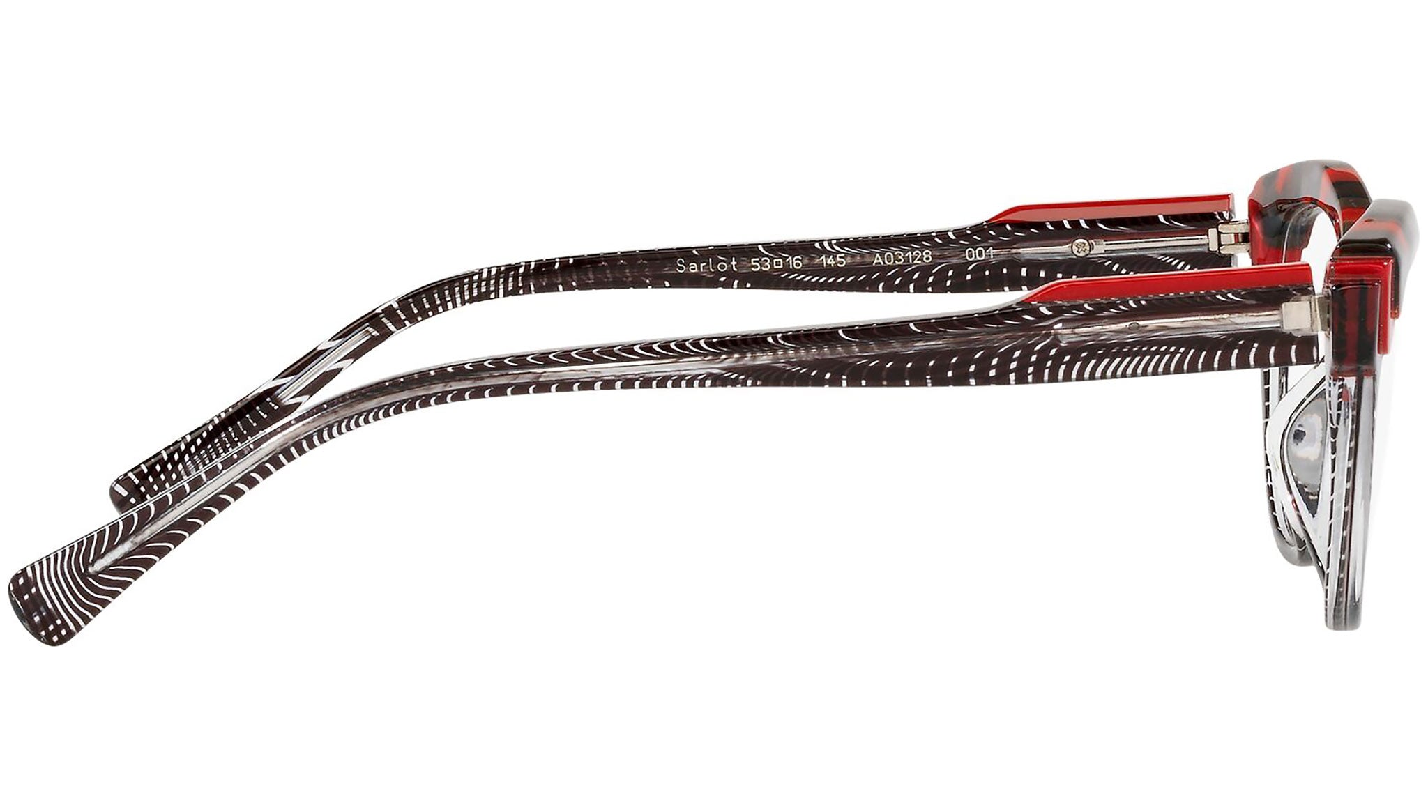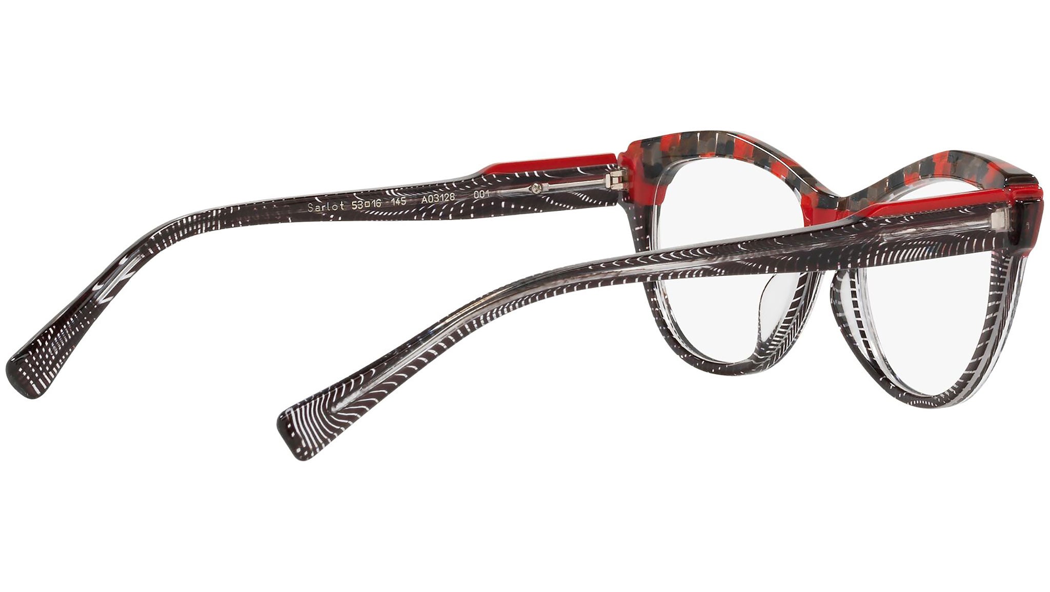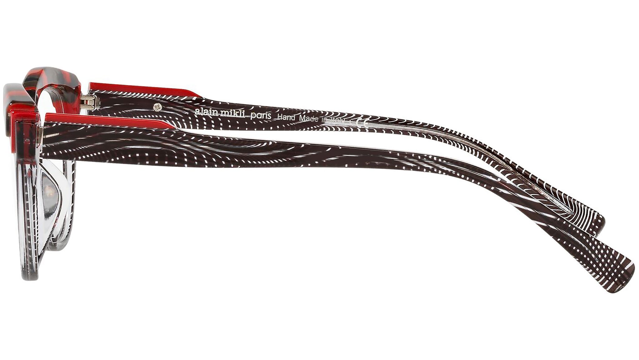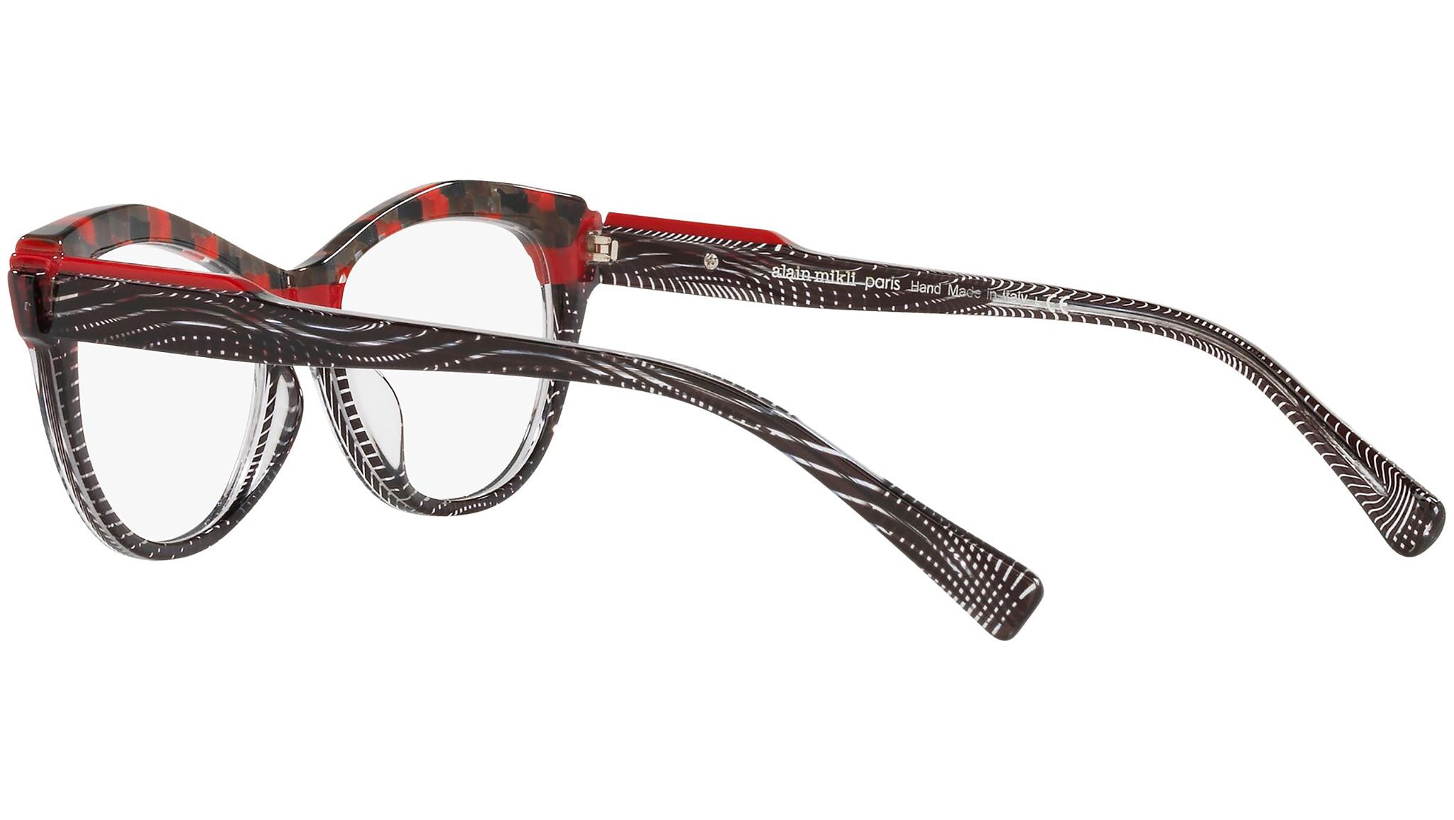 Occhiali da vista Alain Mikli modello A03128 variante colore scacchiera nero e trasparente e rosso, codice colore 001. Alain Mikli è stato il primo marchio a sostenere l’idea di occhiale come accessorio. Dalla fusione di arte e moda nascono montature da sempre sinonimo di unicità e provocazione, contraddistinte per il design originale e le combinazioni di colori esclusive.
