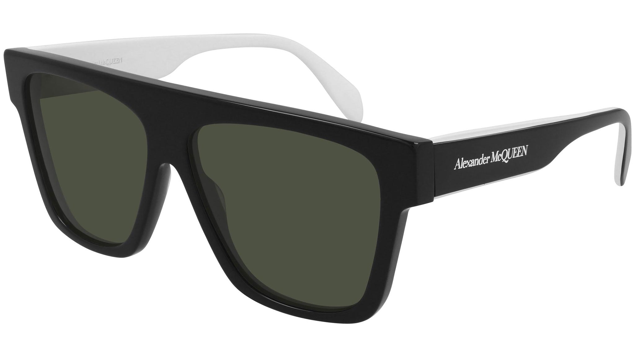 Occhiali da sole Alexander McQueen linea Romance modello AM0302S 003, variante colore nero lucido con lenti color verde tinta unita. Sinonimo di fashion irriverente e senza inibizioni, i modelli Alexander McQueen Eyewear rappresentano la pura giustapposizione tra elementi contrastanti, declinata in modelli da passerella dal segno unico, stimolante e moderno.