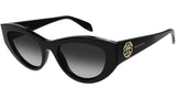 Occhiali da sole Alexander McQueen linea Icons modello AM0377S variante colore 001 nero lucido con lenti color grigio sfumato.