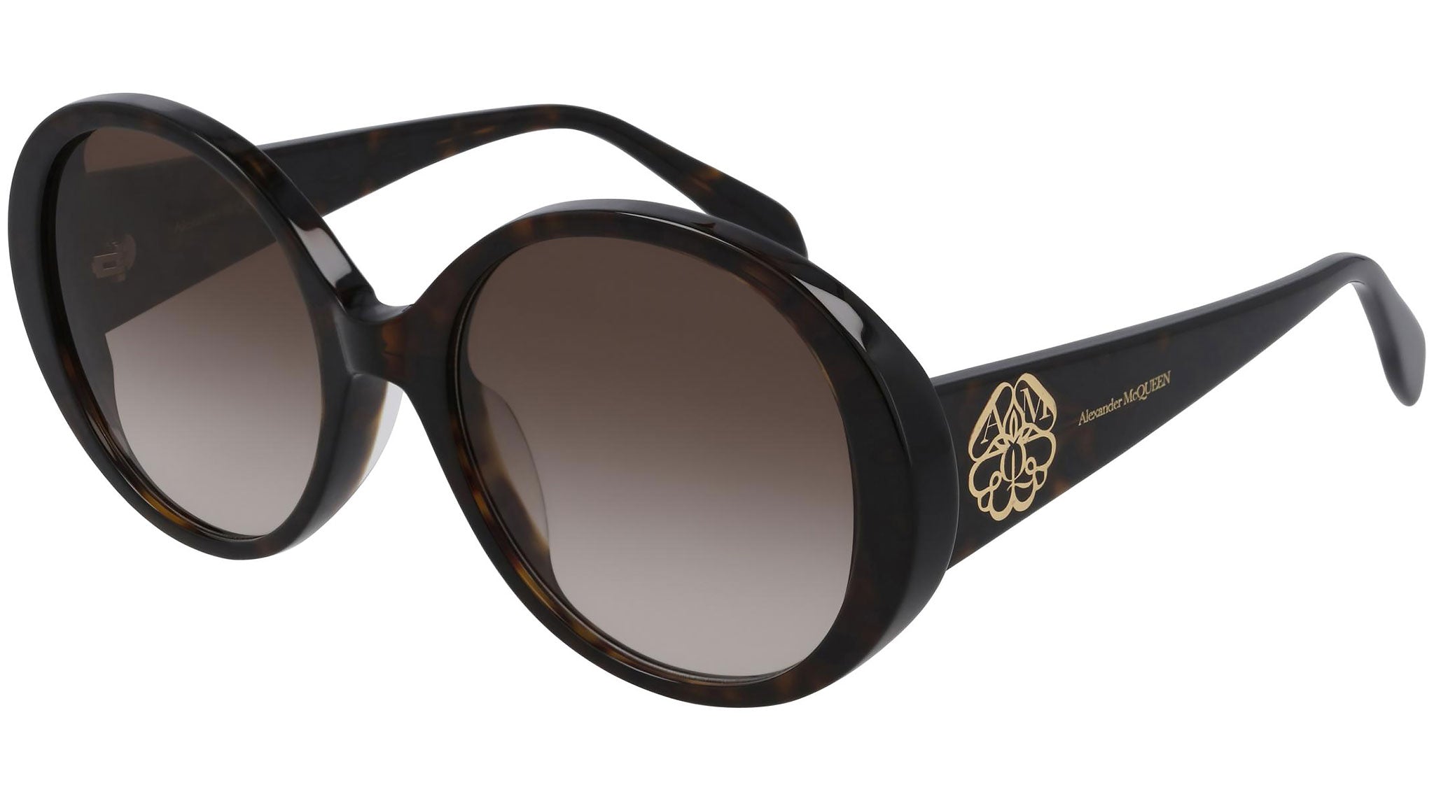 Occhiali da sole Alexander McQueen modello AM0285S, variante colore 003 tartaruga scuro lucido con lenti color marrone sfumato. Sinonimo di fashion irriverente e senza inibizioni, i modelli Alexander McQueen Eyewear rappresentano la pura giustapposizione tra elementi contrastanti, declinata in modelli da passerella dal segno unico, stimolante e moderno.