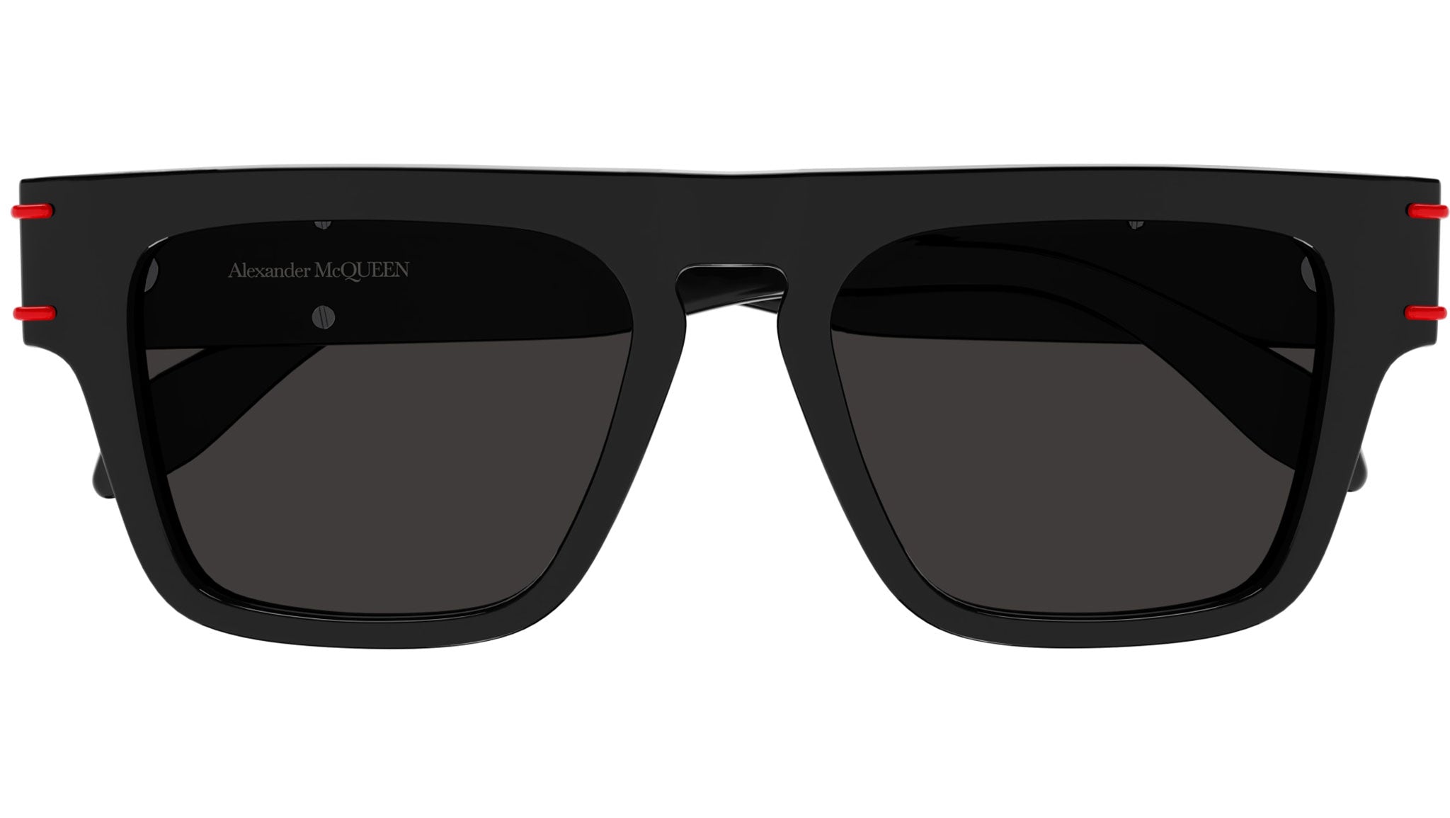 Occhiali da sole Alexander McQueen linea Casual Lines modello AM0397S variante colore 003 nero lucido tinta unita con lenti color grigio tinta unita.