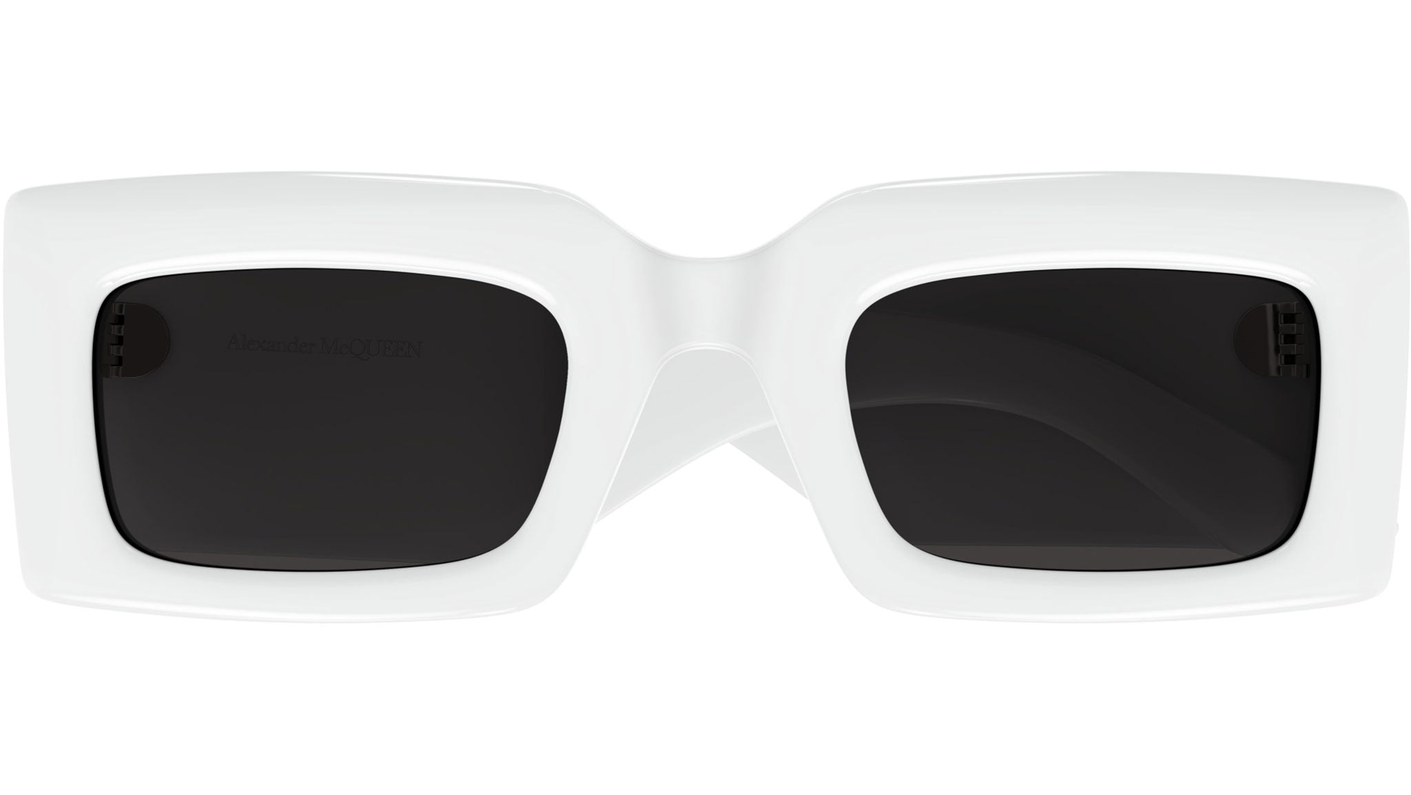 Occhiali da sole Alexander McQueen Casual Lines modello AM0433S rectangle in acetato riciclato codice colore 005 bianco tinta unita lucido con aste bianco e lenti color grigio tinta unita.