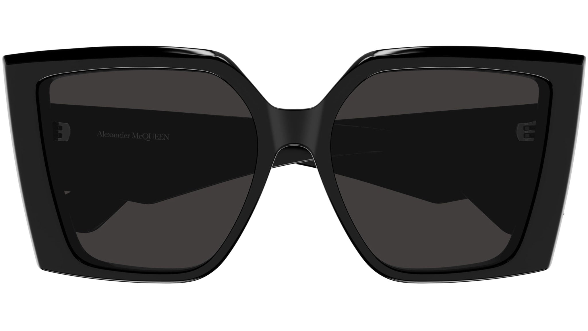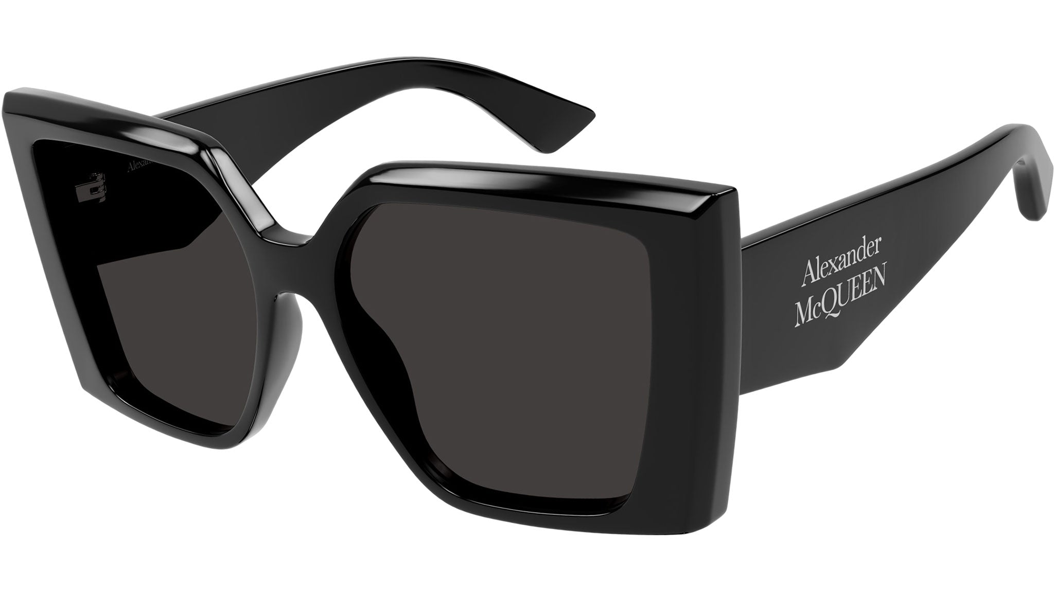 Occhiali da sole Alexander McQueen Casual Lines modello AM0467S in acetato riciclato rettangolare, codice colore 001 nero lucido con aste nero e lenti color grigio tinta unita. Rivenditore autorizzato Alexander McQueen online. Gli occhiali vengono consegnati con custodia e accessori originali e sono coperti dalla garanzia ufficiale di 12 mesi del produttore.