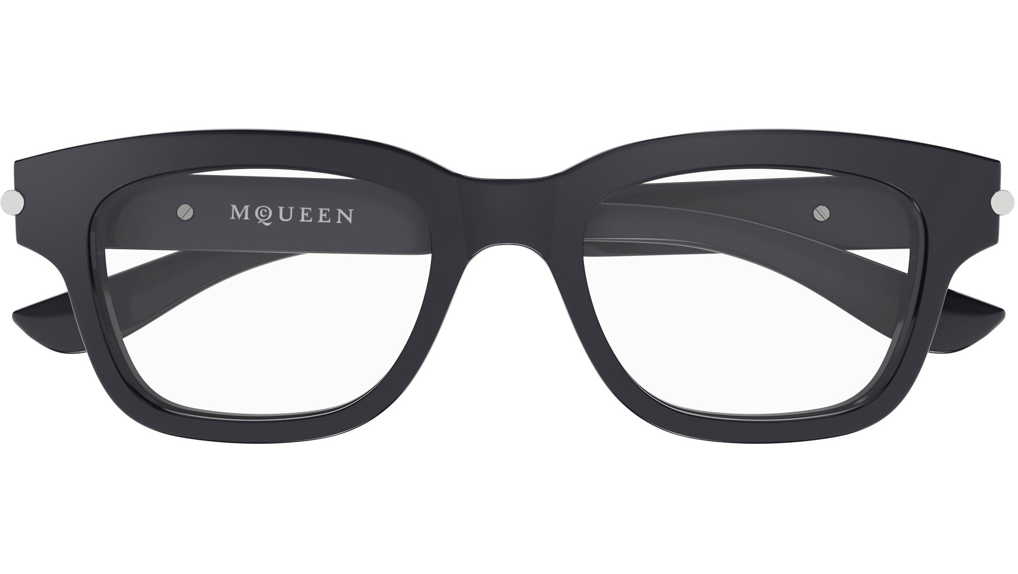 Occhiali da vista Alexander McQueen T-Bar modello AM0497O in acetato riciclato rettangolari codice colore 007 grigio tinta unita lucido con aste grigio e lenti demo. Rivenditore autorizzato Alexander McQueen online. Gli occhiali vengono consegnati con custodia e accessori originali e sono coperti dalla garanzia ufficiale di 12 mesi del produttore.