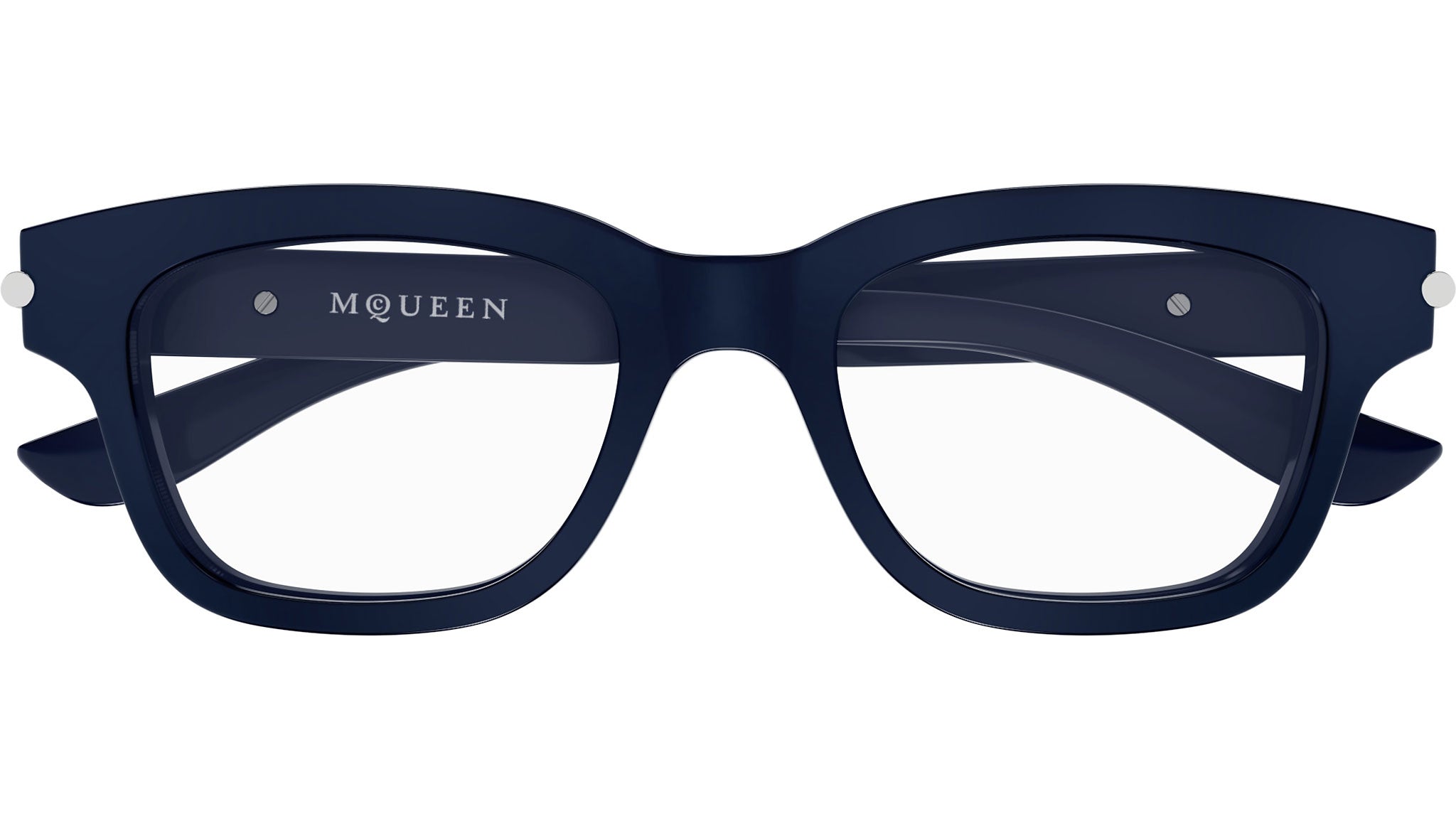 Occhiali da vista Alexander McQueen T-Bar modello AM0497O in acetato riciclato rettangolari codice colore 008 blu lucido tinta unita con aste blu e lenti demo. Rivenditore autorizzato Alexander McQueen online. Gli occhiali vengono consegnati con custodia e accessori originali e sono coperti dalla garanzia ufficiale di 12 mesi del produttore.