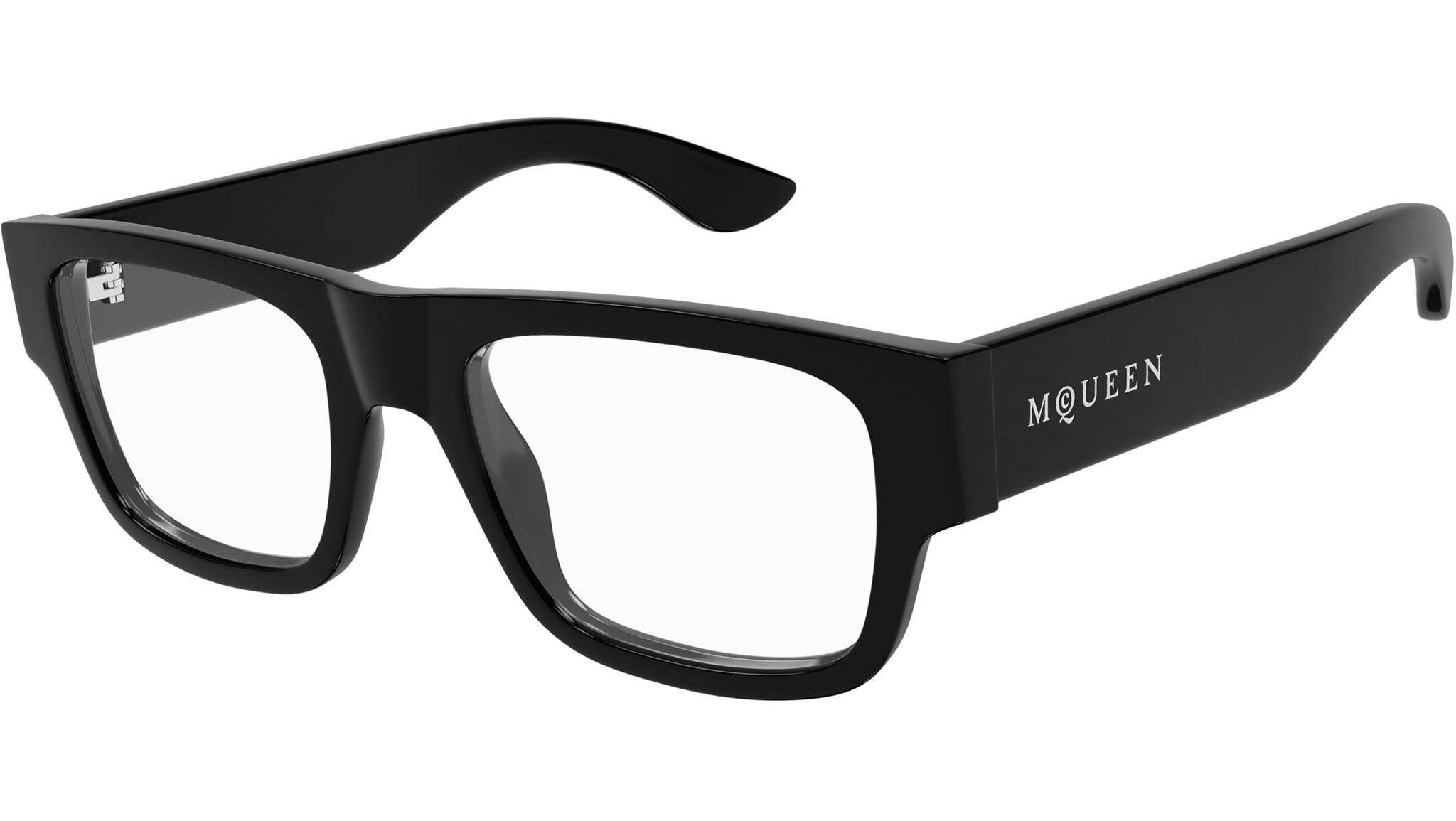 Occhiali da vista Alexander McQueen Logo modello AM0511O in acetato riciclato rettangolari codice colore 001 nero lucido tinta unita con aste nero e lenti demo. Rivenditore autorizzato Alexander McQueen online. Gli occhiali vengono consegnati con custodia e accessori originali e sono coperti dalla garanzia ufficiale di 12 mesi del produttore.