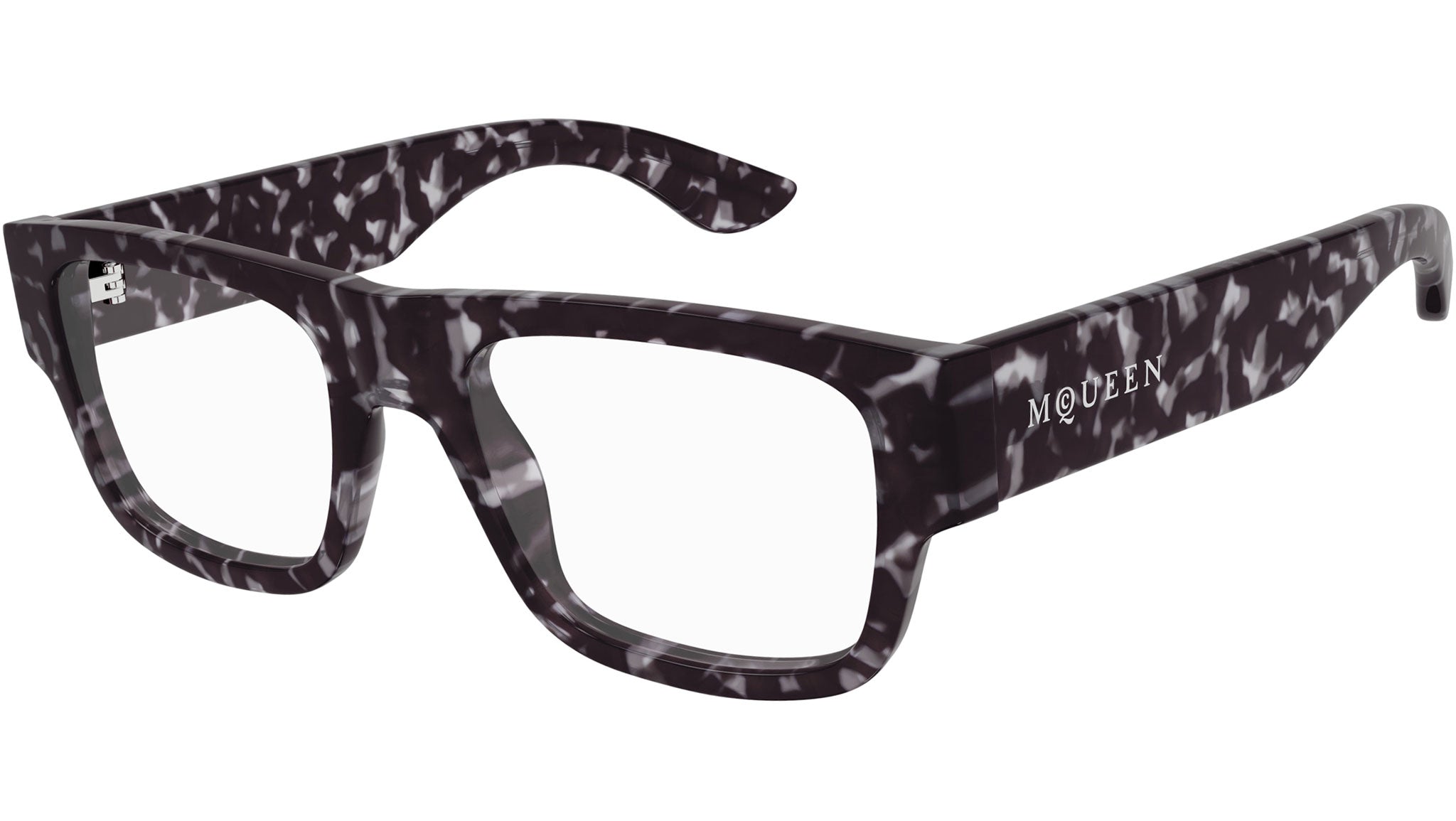 Occhiali da vista Alexander McQueen Logo modello AM0511O in acetato riciclato rettangolari codice colore 002 grigio lucido avana scuro con aste avana e lenti demo. Rivenditore autorizzato Alexander McQueen online. Gli occhiali vengono consegnati con custodia e accessori originali e sono coperti dalla garanzia ufficiale di 12 mesi del produttore.