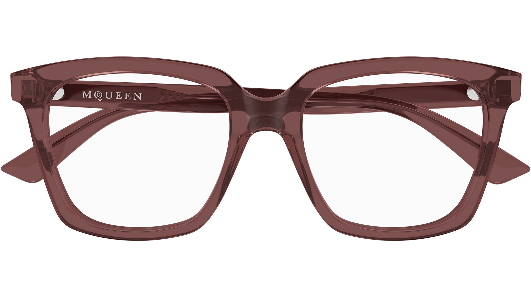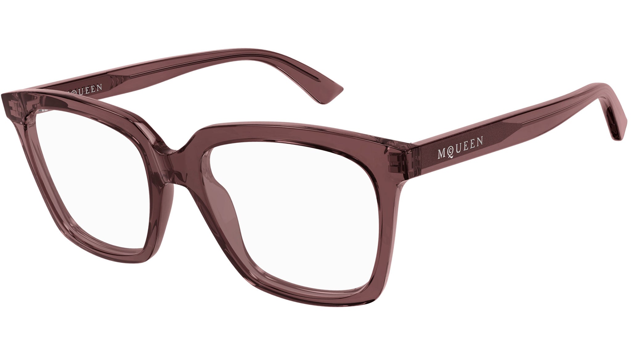 Occhiali da vista Alexander McQueen Logo modello AM0513O in acetato riciclato cat eye codice colore 004 prugna trasparente lucido con aste viola e lenti demo. Rivenditore autorizzato Alexander McQueen online. Gli occhiali vengono consegnati con custodia e accessori originali e sono coperti dalla garanzia ufficiale di 12 mesi del produttore.