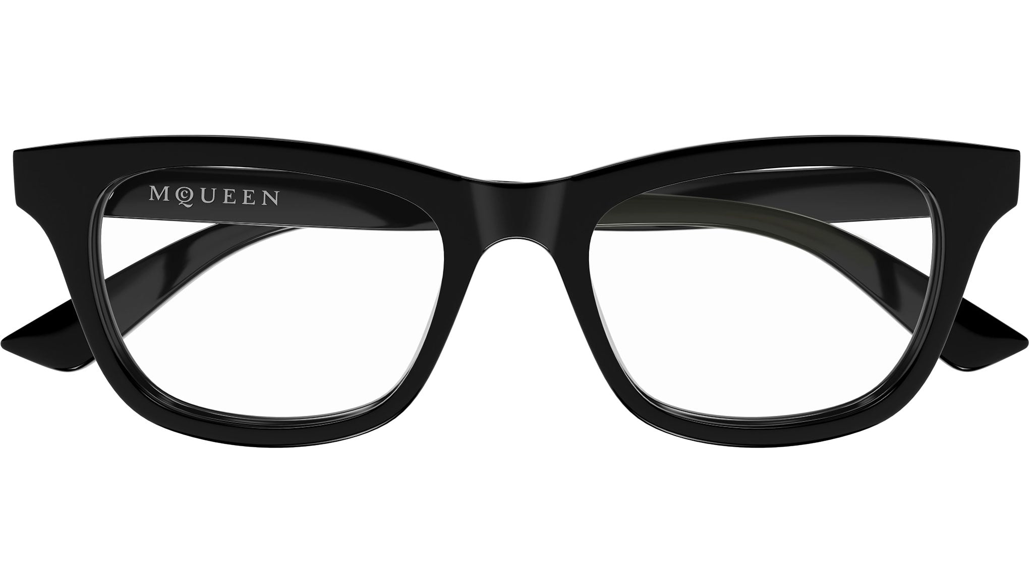 Occhiali da vista Alexander McQueen Logo modello AM0515O in acetato riciclato cat eye codice colore 007 nero lucido tinta unita con aste nero e lenti demo. Rivenditore autorizzato Alexander McQueen online. Gli occhiali vengono consegnati con custodia e accessori originali e sono coperti dalla garanzia ufficiale di 12 mesi del produttore.
