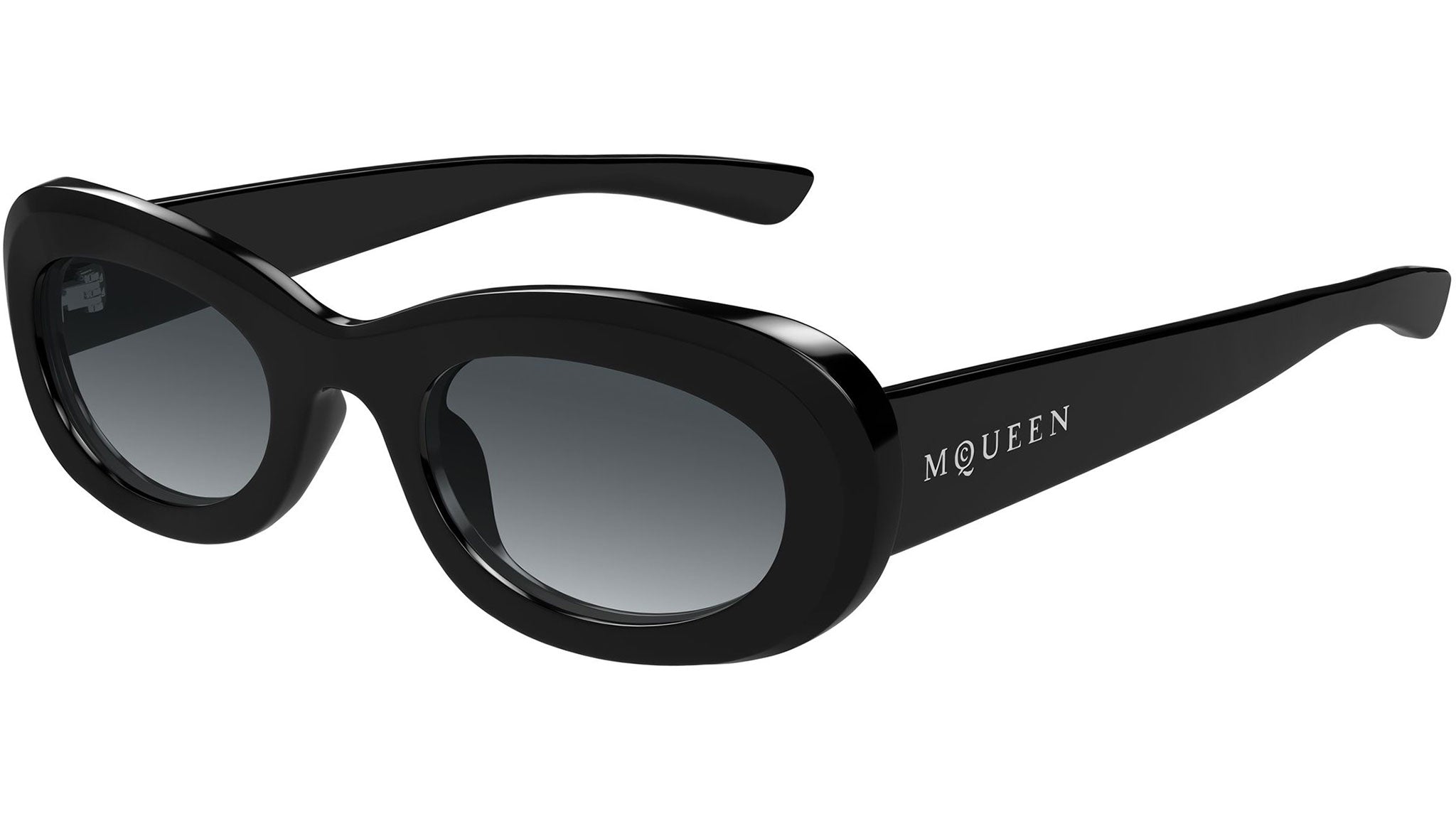 Occhiali da sole Alexander McQueen Logo modello AM0527S in acetato riciclato panthos codice colore 001 nero lucido tinta unita con aste nero e lenti color grigio sfumato. Rivenditore autorizzato Alexander McQueen online. Gli occhiali vengono consegnati con custodia e accessori originali e sono coperti dalla garanzia ufficiale di 12 mesi del produttore.