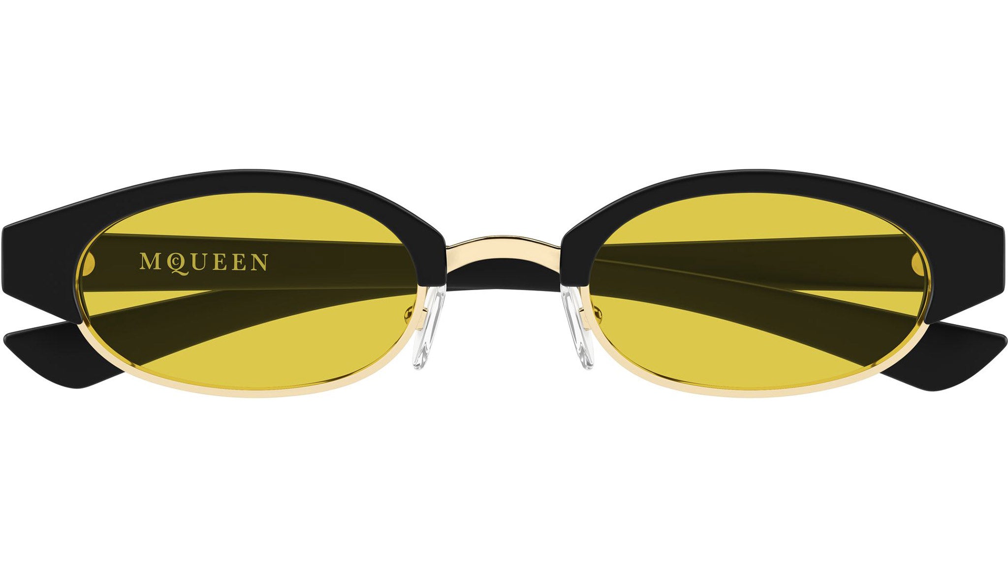 Occhiali da sole Alexander McQueen Logo modello AM0534S in acetato riciclato panthos codice colore 003 nero opaco con aste nero e lenti color giallo tinta unita. Rivenditore autorizzato Alexander McQueen online. Gli occhiali vengono consegnati con custodia e accessori originali e sono coperti dalla garanzia ufficiale di 12 mesi del produttore.