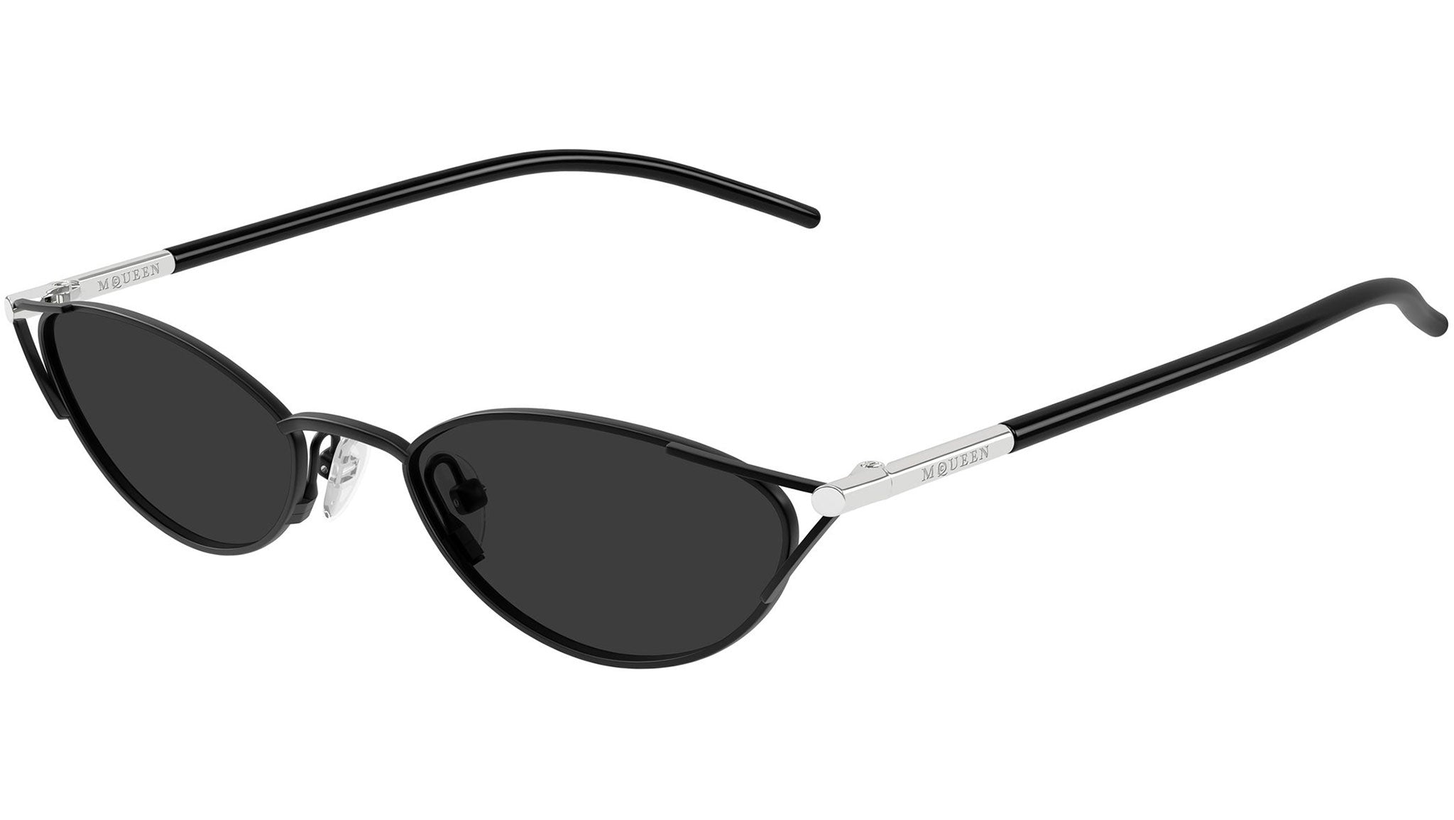 Occhiali da sole Alexander McQueen AM0563S 001 donna con montatura cat eye in metallo nero opaco effetto vernice e lenti grigio tinta unita. Linea: T-Bar. Codice modello: AM0563S. Codice colore: 001. Made in Japan. Rivenditore autorizzato Alexander McQueen online. Gli occhiali vengono consegnati con custodia e accessori originali e sono coperti dalla garanzia ufficiale di 12 mesi del produttore.
