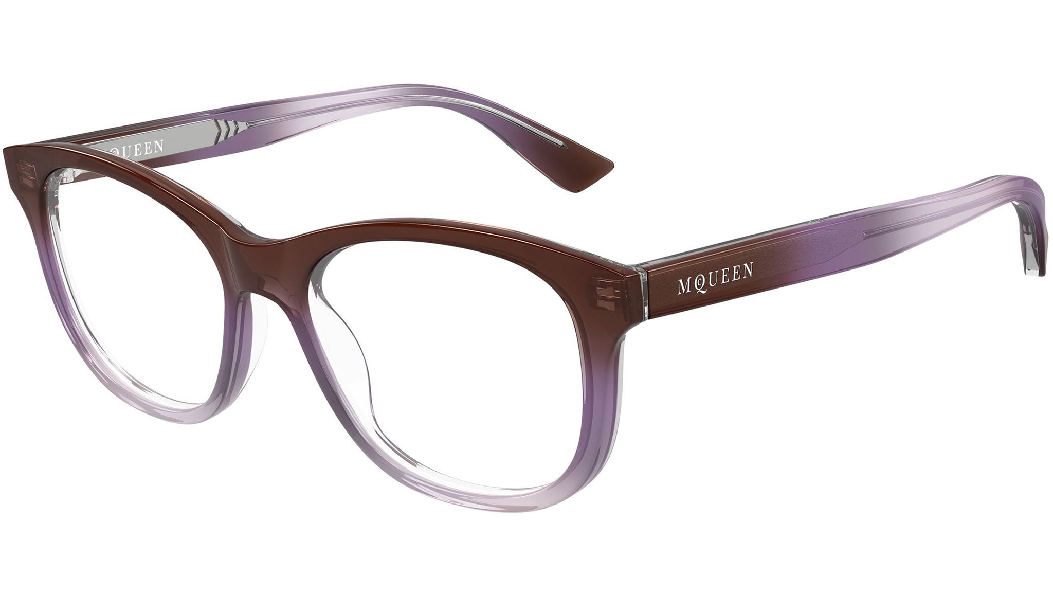 Occhiali da vista Alexander McQueen AM0568O 012 donna con montatura cat eye in acetato riciclato marrone / viola / rosa trasparente sfumato lucido e lenti demo. Linea: Logo. Codice modello: AM0568O. Codice colore: 012. Made in Italy. Rivenditore autorizzato Alexander McQueen online. Gli occhiali vengono consegnati con custodia e accessori originali e sono coperti dalla garanzia ufficiale di 12 mesi del produttore.