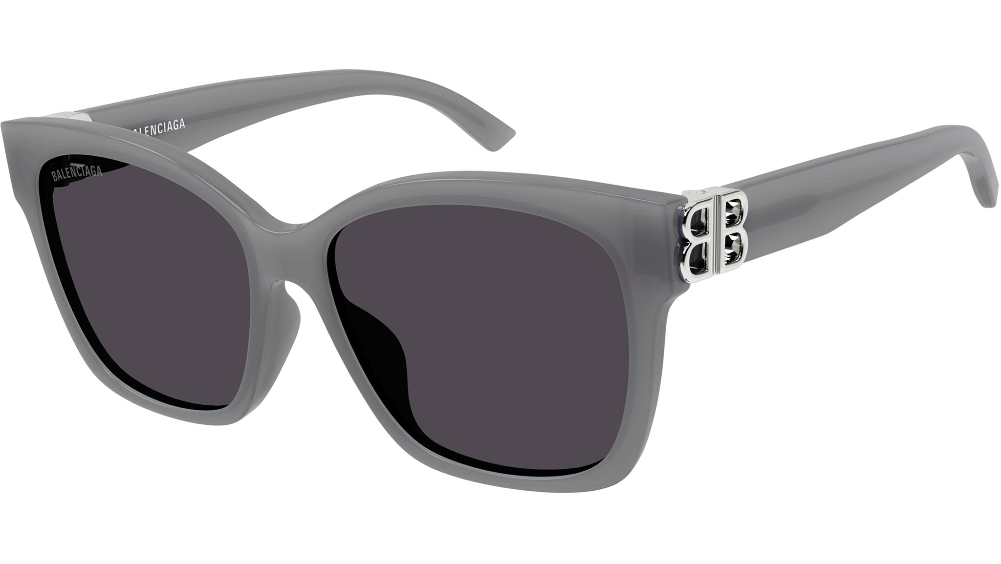 Occhiali da sole Balenciaga linea Everyday BB0102SA codice colore 011 con montatura grigio tinta unita lucido e lenti color grigio tinta unita.