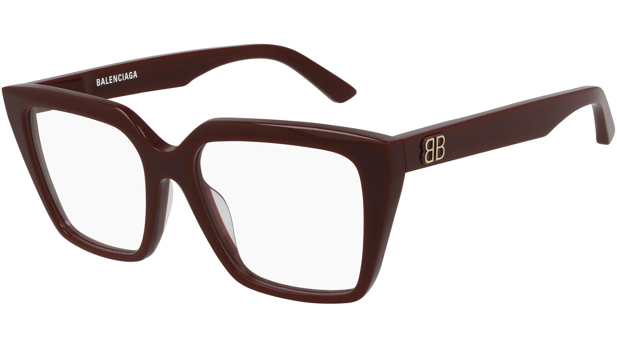 Occhiali da vista Balenciaga linea Everyday modello BB0130O 006, variante colore bordeaux tinta unita lucido con astine color rosso borgogna.