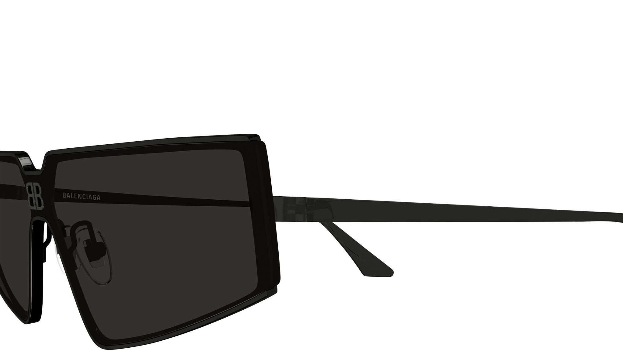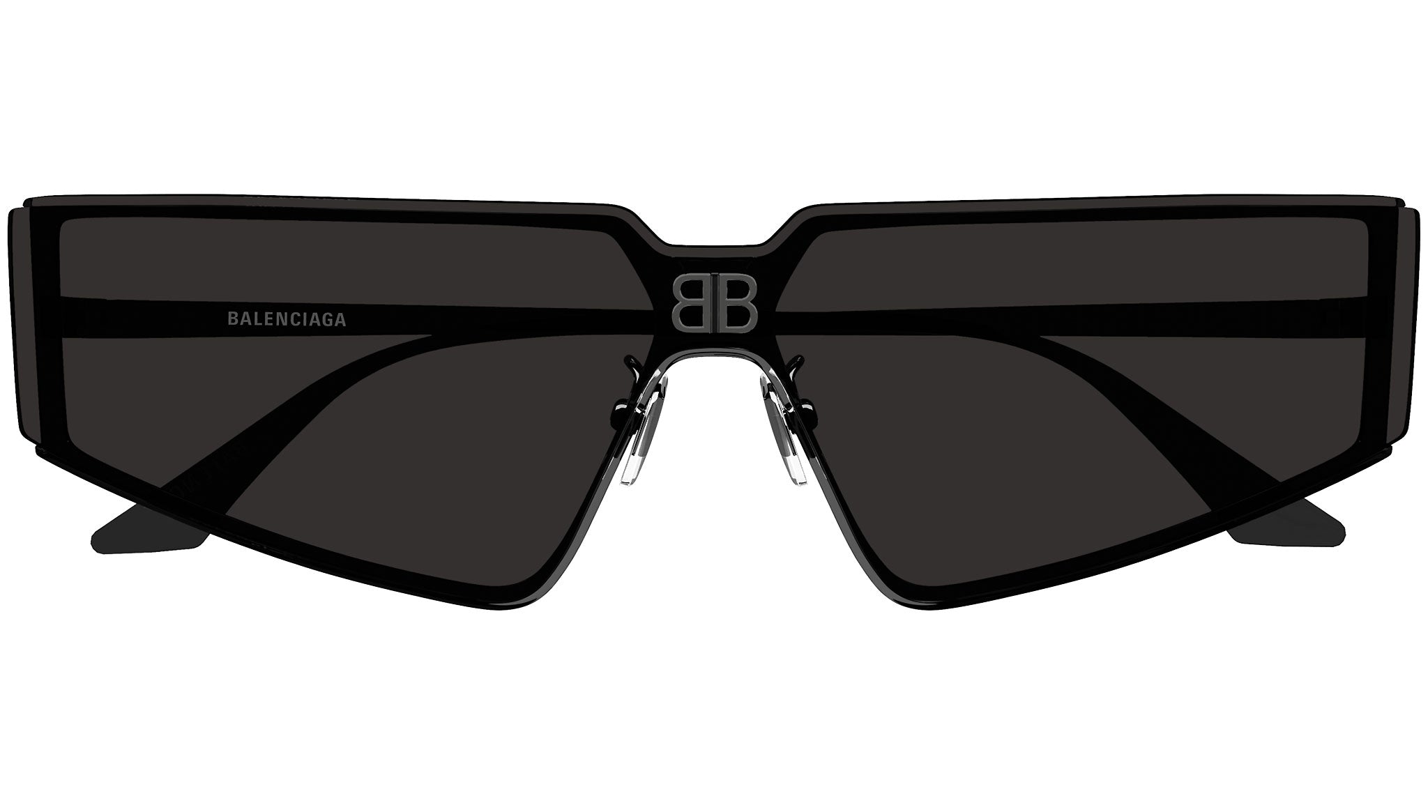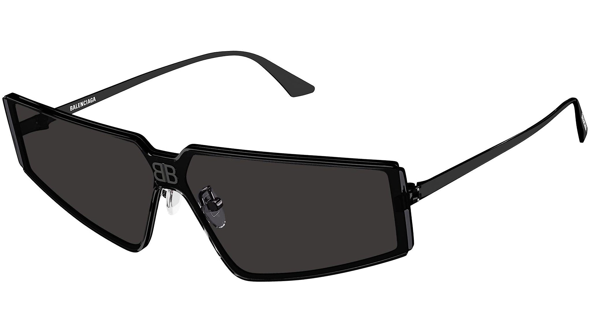 Occhiali da sole Balenciaga linea Everyday modello 0192S, variante colore 001 nero lucido con lenti color grigio mask tinta unita.