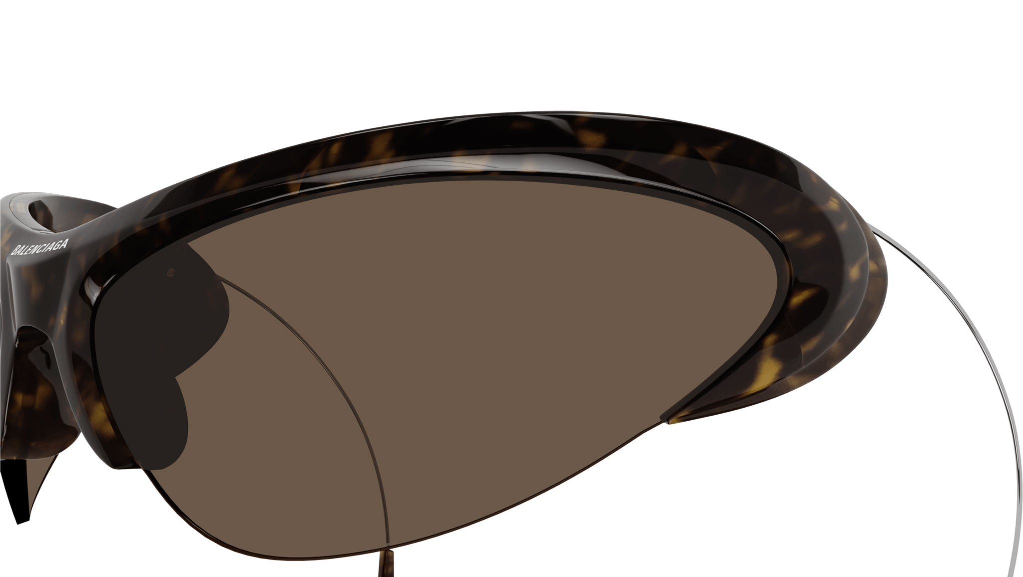 Occhiali da sole Balenciaga linea Extreme BB0232S codice colore 002 con montatura tartaruga scuro lucido e lenti color marrone tinta unita (lente super 7).