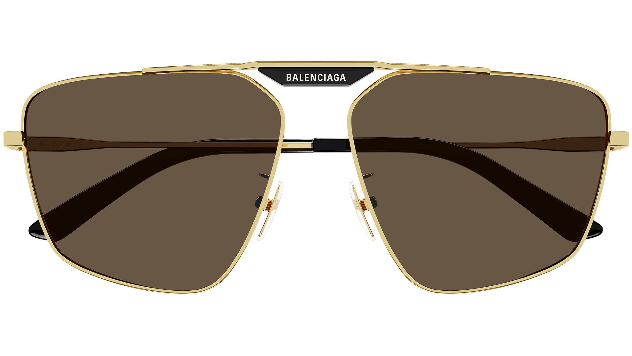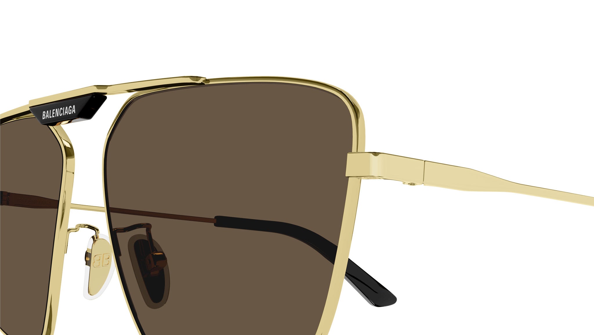 Occhiali da sole Balenciaga linea Everyday BB0246SA codice colore 003 con montatura oro chiaro lucido e lenti color marrone tinta unita.