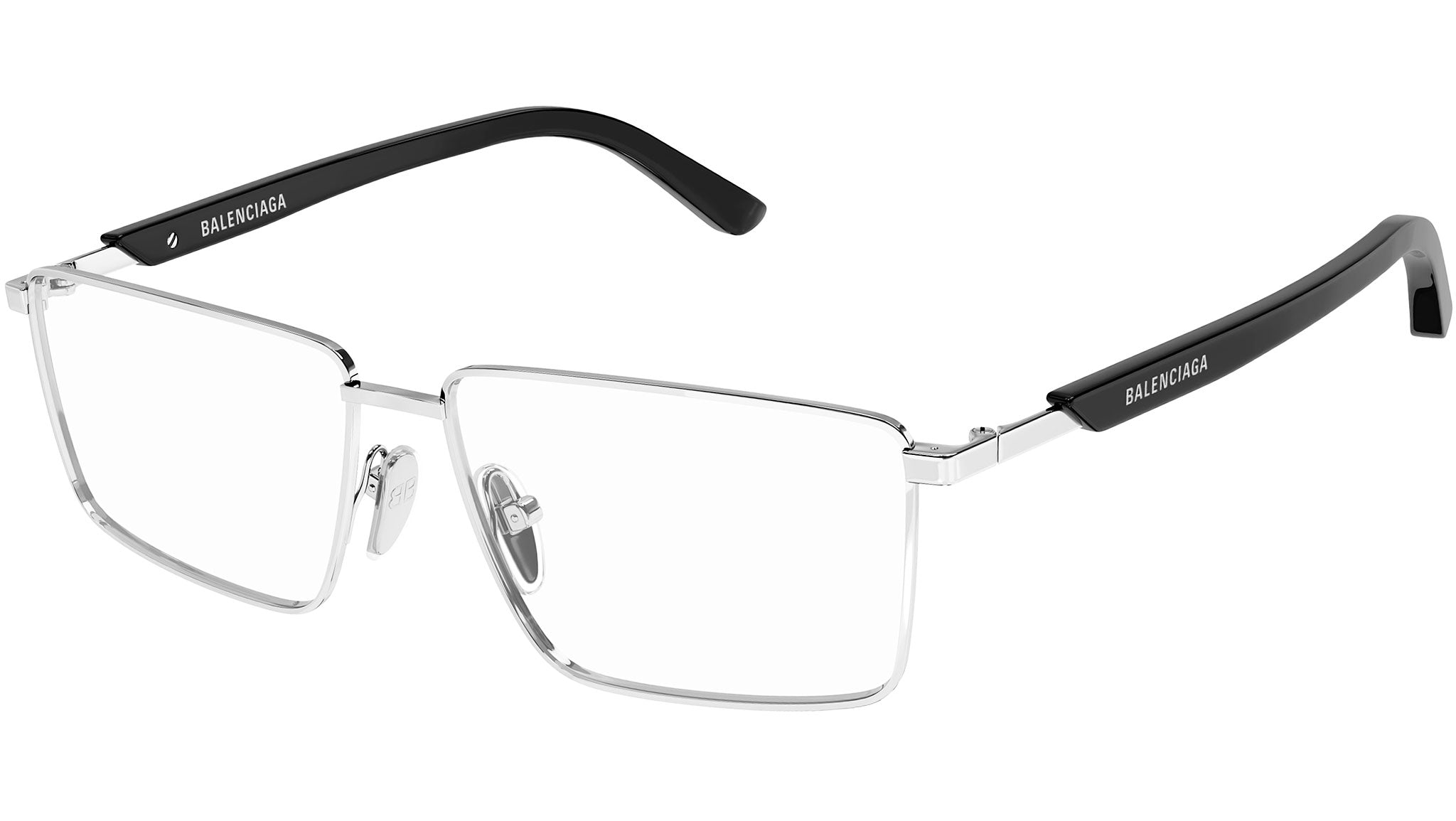 Occhiali da vista Balenciaga Everyday modello BB0247O 001 variante colore 001 argento lucido con astine color nero.