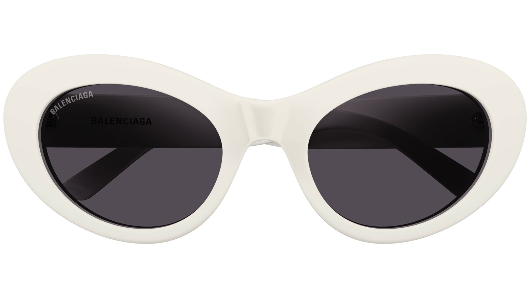 Occhiali da sole Balenciaga modello BB0294S linea Everyday codice colore 003 avorio tinta unita lucido in acetato riciclato forma panthos con lenti color grigio tinta unita.