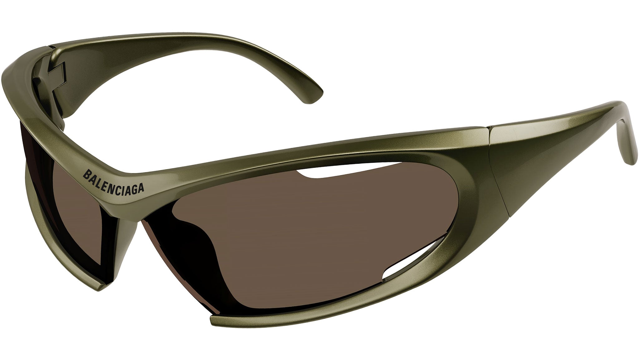 Occhiali da sole Balenciaga modello BB0318S linea Extreme codice colore 004 beige metallico lucido in injection forma geometric con lenti color marrone tinta unita.