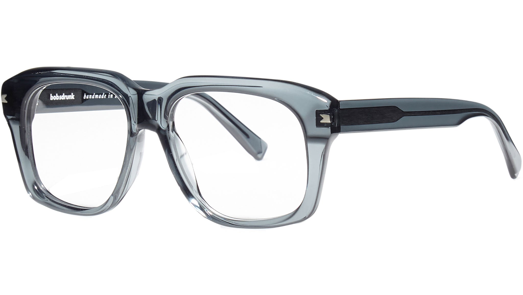 Montatura da vista Bobsdrunk Biff codice colore 19 in tonalità grigio trasparente. Prodotti senza tempo e forme audaci convivono in questa originale collezione Eyewear. Le linee sono disegnate con maestria, per creare un effetto di audace leggerezza. Ogni paio di occhiali Bobsdrunk è caratterizzato da un dettaglio emblematico, mostrato sulla parte anteriore e sulla punta delle aste, che evidenzia il valore del marchio. Rappresenta in un iconico simbolo l'unione della lettera iniziale e finale di Bobsdrunk. La scelta accurata dei materiali, la selezione dell'artigianalità e una costante ricerca cromatica sono le prerogative di ogni creazione di Bobsdrunk.