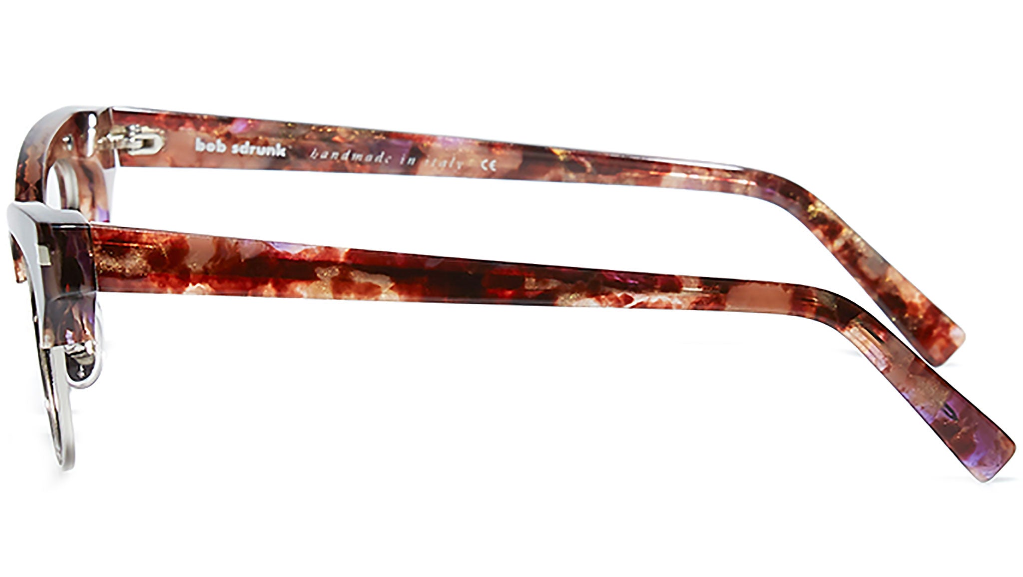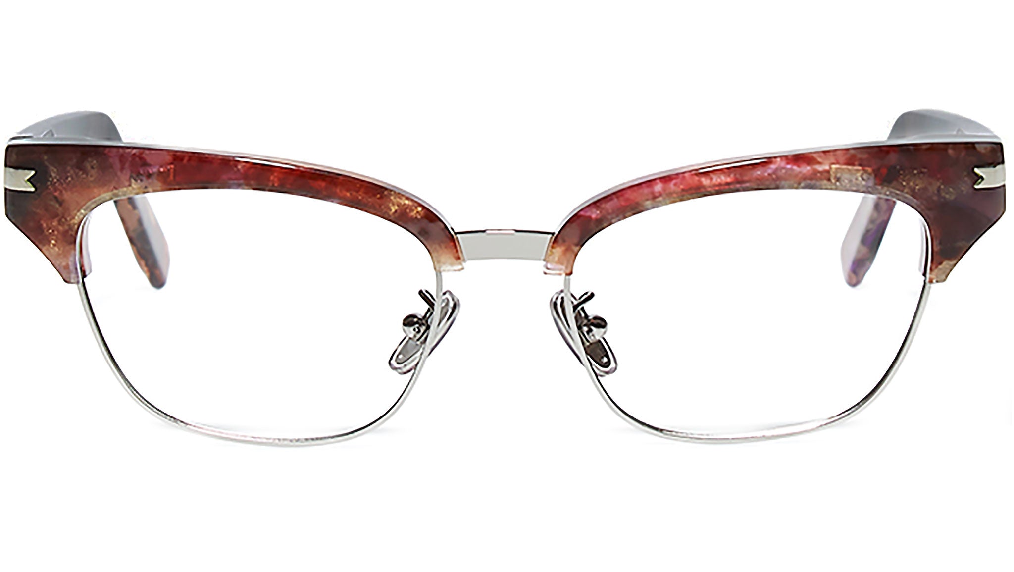 Metallic frame in silver with violet marble detail and antiglare filters.