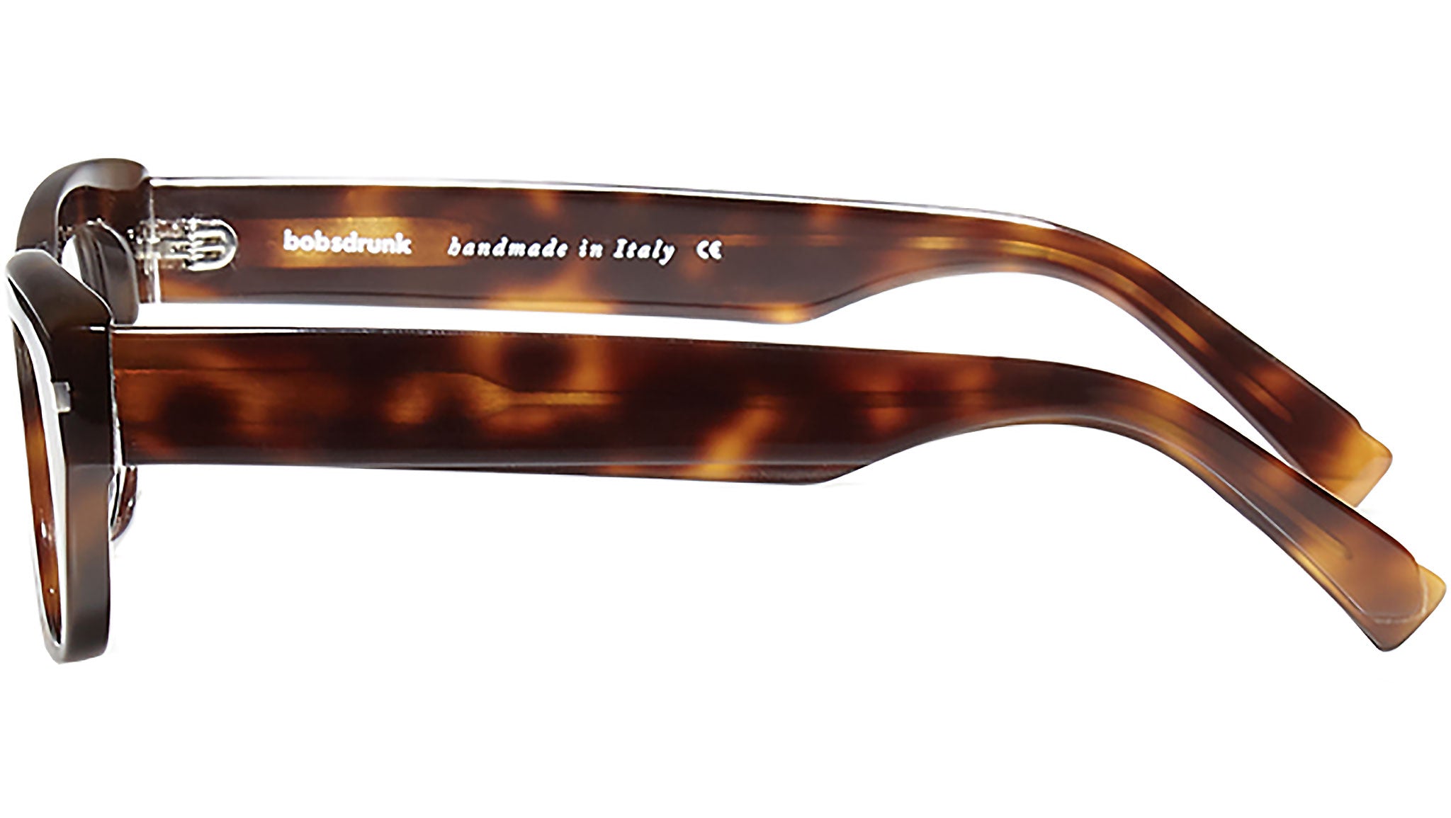 Montatura da vista Bobsdrunk Gary codice colore 02 in tonalità tartaruga. Prodotti senza tempo e forme audaci convivono in questa originale collezione Eyewear. Le linee sono disegnate con maestria, per creare un effetto di audace leggerezza. Ogni paio di occhiali Bobsdrunk è caratterizzato da un dettaglio emblematico, mostrato sulla parte anteriore e sulla punta delle aste, che evidenzia il valore del marchio. Rappresenta in un iconico simbolo l'unione della lettera iniziale e finale di Bobsdrunk. La scelta accurata dei materiali, la selezione dell'artigianalità e una costante ricerca cromatica sono le prerogative di ogni creazione di Bobsdrunk.