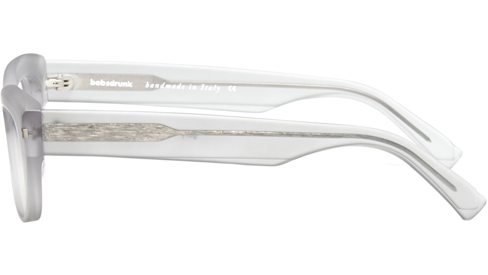 Montatura da vista Bobsdrunk Gary codice colore 171/S in tonalità grigio trasparente opaco. Prodotti senza tempo e forme audaci convivono in questa originale collezione Eyewear. Le linee sono disegnate con maestria, per creare un effetto di audace leggerezza. Ogni paio di occhiali Bobsdrunk è caratterizzato da un dettaglio emblematico, mostrato sulla parte anteriore e sulla punta delle aste, che evidenzia il valore del marchio. Rappresenta in un iconico simbolo l'unione della lettera iniziale e finale di Bobsdrunk. La scelta accurata dei materiali, la selezione dell'artigianalità e una costante ricerca cromatica sono le prerogative di ogni creazione di Bobsdrunk.