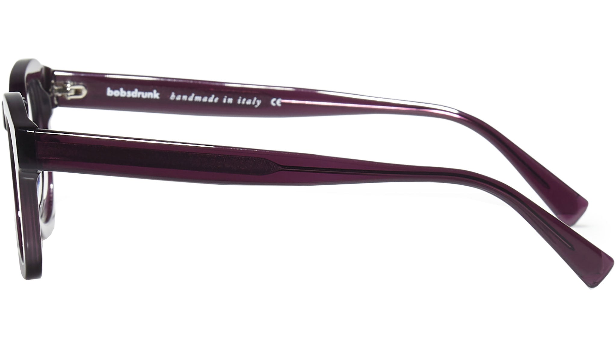 Montatura da vista Bobsdrunk Matt (46) codice colore 18 in tonalità violetto trasparente. Prodotti senza tempo e forme audaci convivono in questa originale collezione Eyewear. Le linee sono disegnate con maestria, per creare un effetto di audace leggerezza. Ogni paio di occhiali Bobsdrunk è caratterizzato da un dettaglio emblematico, mostrato sulla parte anteriore e sulla punta delle aste, che evidenzia il valore del marchio. Rappresenta in un iconico simbolo l'unione della lettera iniziale e finale di Bobsdrunk. La scelta accurata dei materiali, la selezione dell'artigianalità e una costante ricerca cromatica sono le prerogative di ogni creazione di Bobsdrunk.