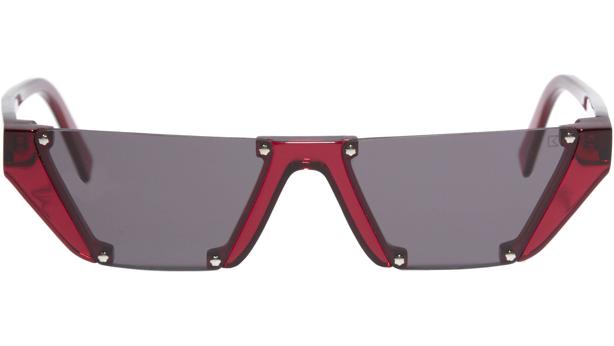 Acetate frame in bordeaux with silver details. black solid lenses.