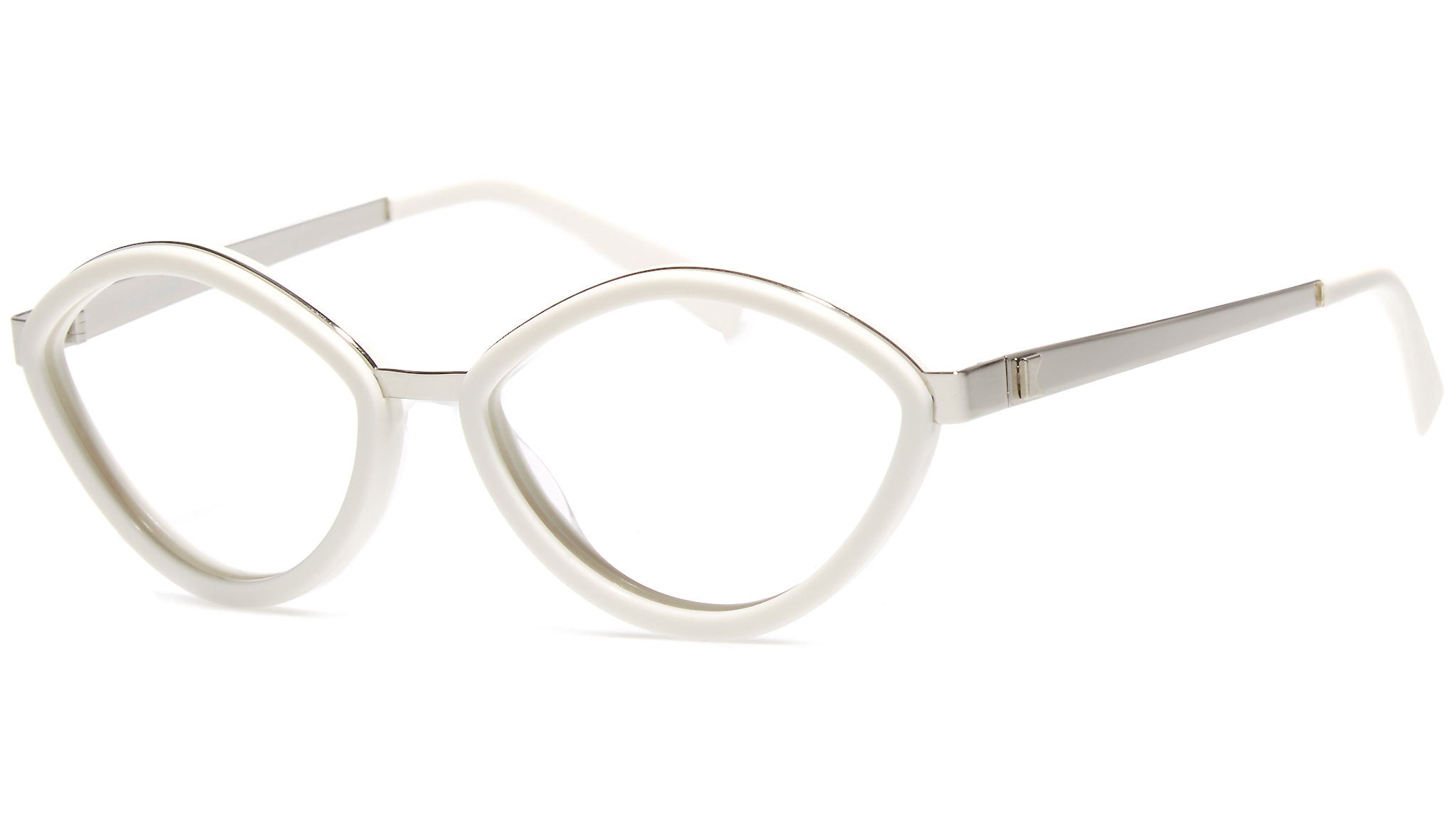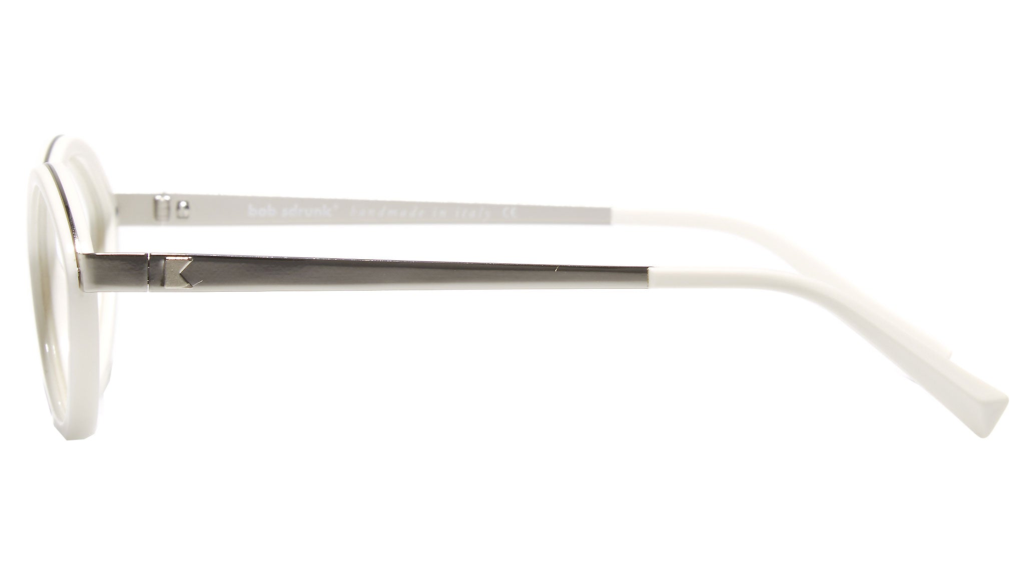 Il modello Bob Sdrunk da vista Wilma 12 con montatura bianca e lenti demo antiriflesso. La meticolosa ricerca del design, delle forme, dei materiali e la cura di ogni singolo dettaglio, da vita a occhiali di alta qualità, originali e non convenzionali. Bob Sdrunk si propone di creare qualcosa che non è mai esistito; qualcosa che trova la sua vera sua identità nel futuro, ma trae origine da ispirazioni che provengono dal passato.