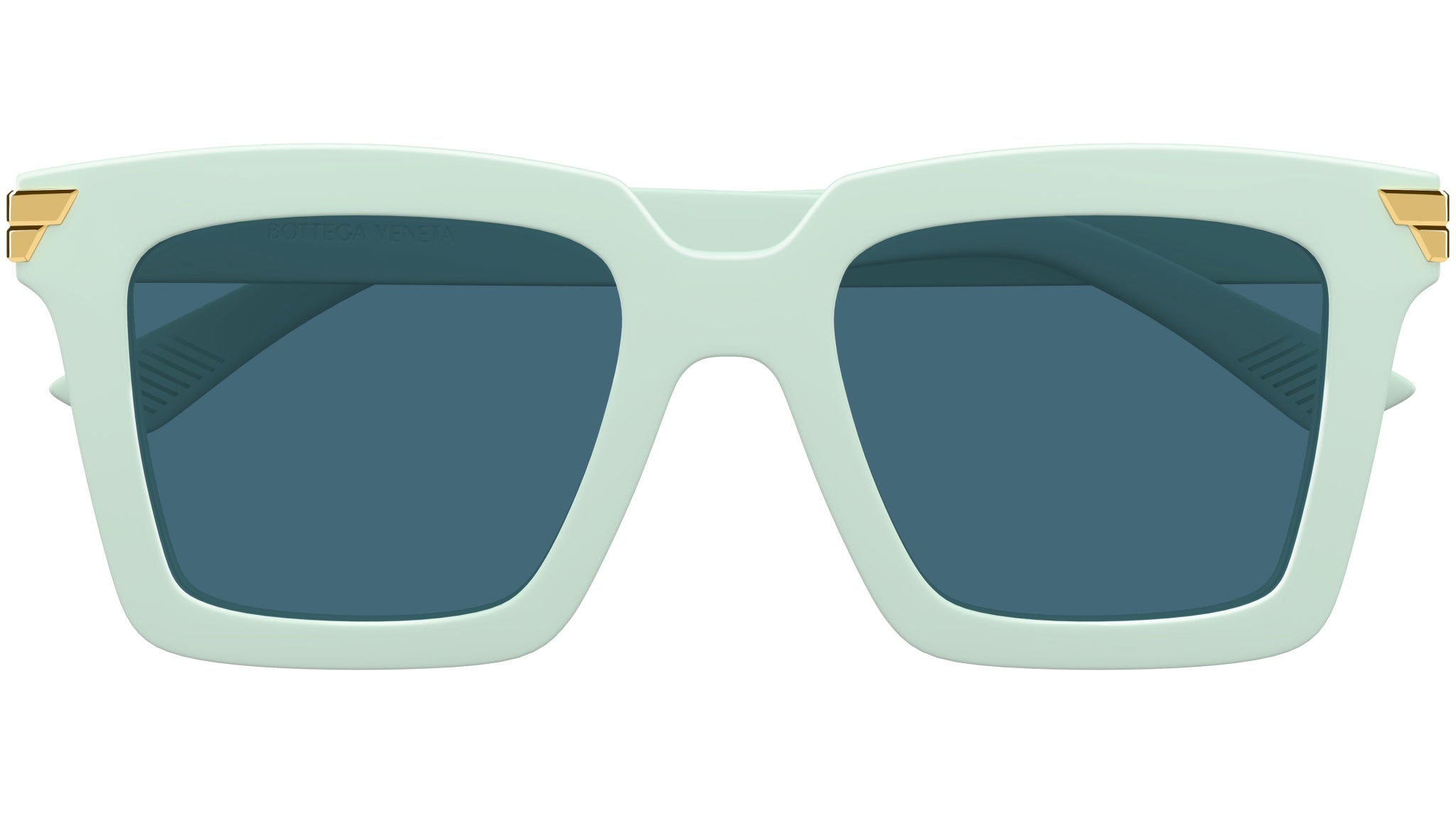 Occhiali da sole Bottega Veneta modello BV1005S linea Unapologetic in acetato forma rettangolare codice colore 011 ghiaccio menta solido lucido con lenti color blu verde tinta unita. Rivenditore autorizzato Bottega Veneta online. Gli occhiali vengono consegnati con custodia e accessori originali e sono coperti dalla garanzia ufficiale di 12 mesi del produttore.