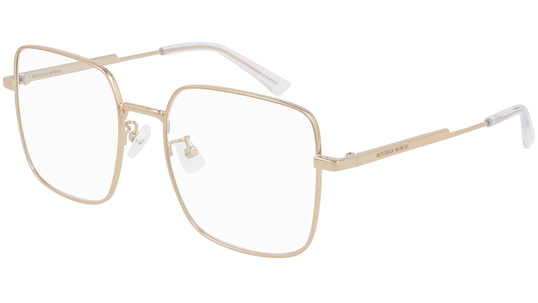 Occhiali da vista Bottega Veneta linea DNA variante colore 003 oro rosso brillante con astine color rosso.