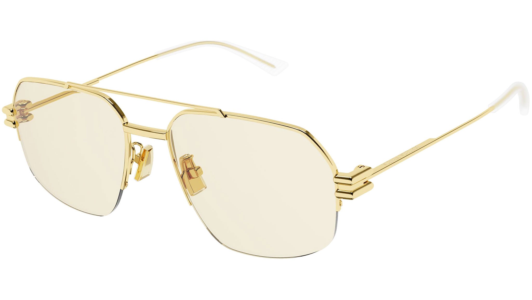 Occhiali da sole Bottega Veneta linea New Classic modello BV1127S 006, variante colore oro lucido con lenti color giallo chiaro tinta unita. Ispirata alla miglior cultura italiana, ma con una visione globale, la Maison trova il suo tratto distintivo in un segno di stile decisamente raffinato. Bottega Veneta utilizza materiali nobili per creare occhiali dalle nuances preziose, che diventano parte della vita di chi li indossa.