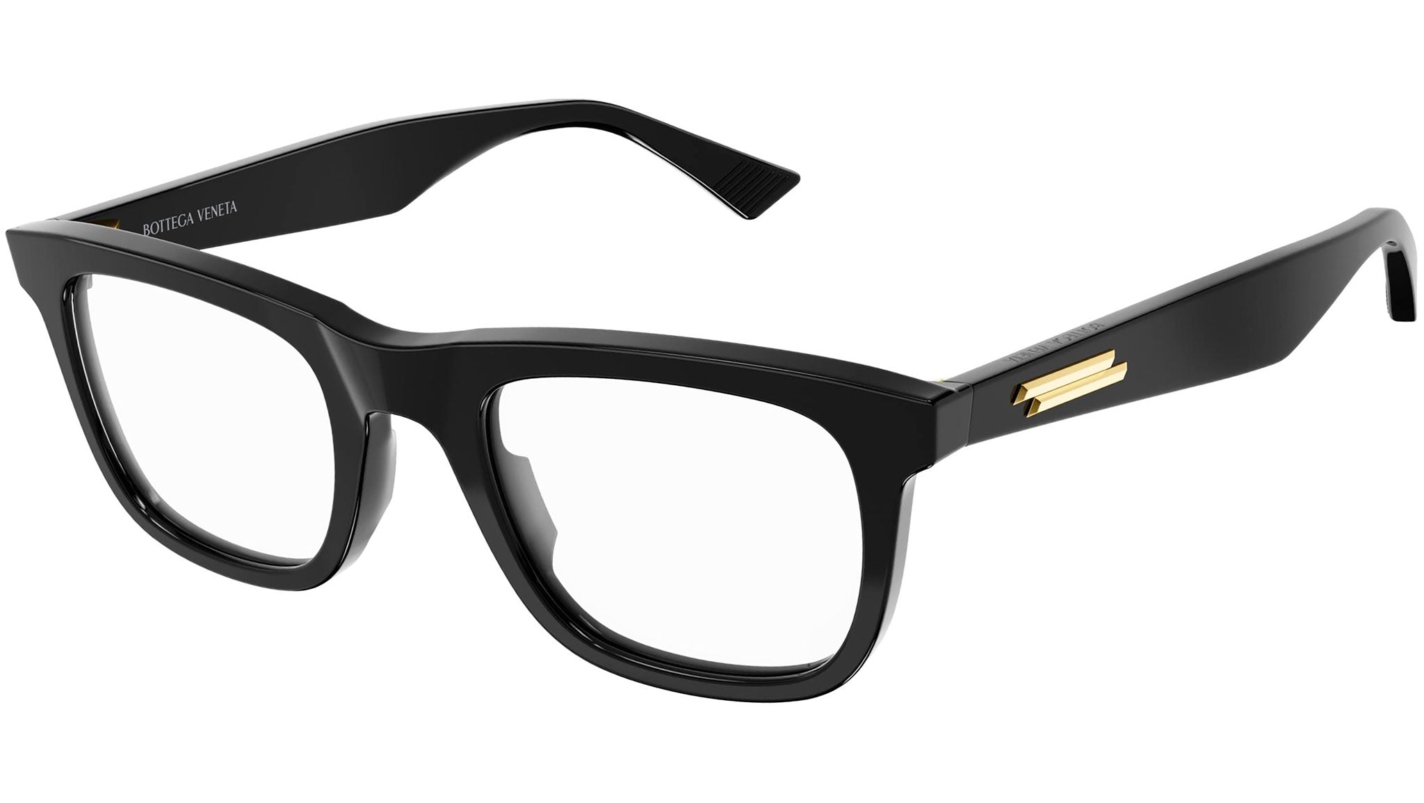 Occhiali da vista Bottega Veneta linea New Classic variante colore 001 nero lucido con astine color nero.