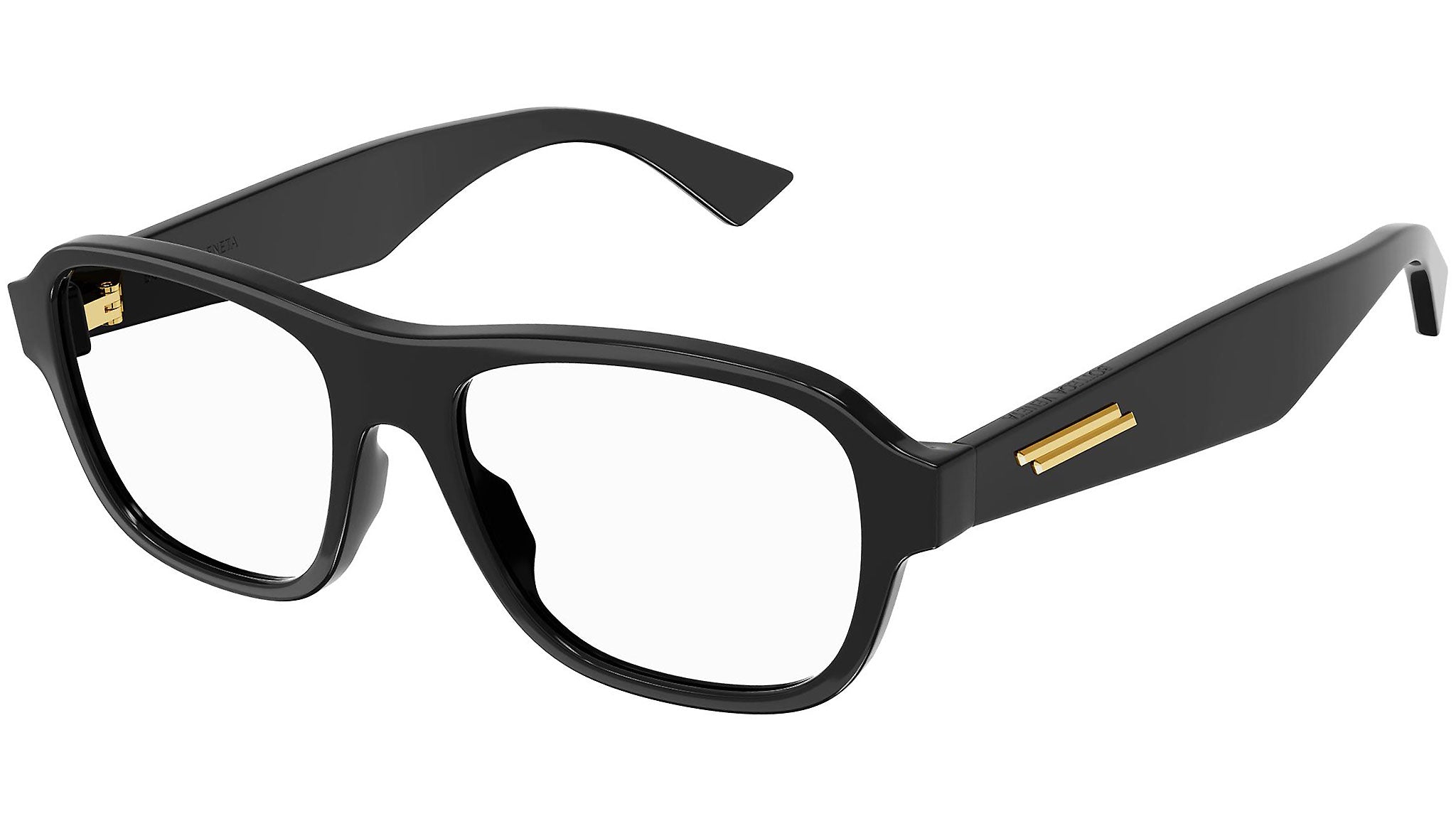 Occhiali da vista Bottega Veneta linea New Classic variante colore 001 nero lucido con astine color nero.