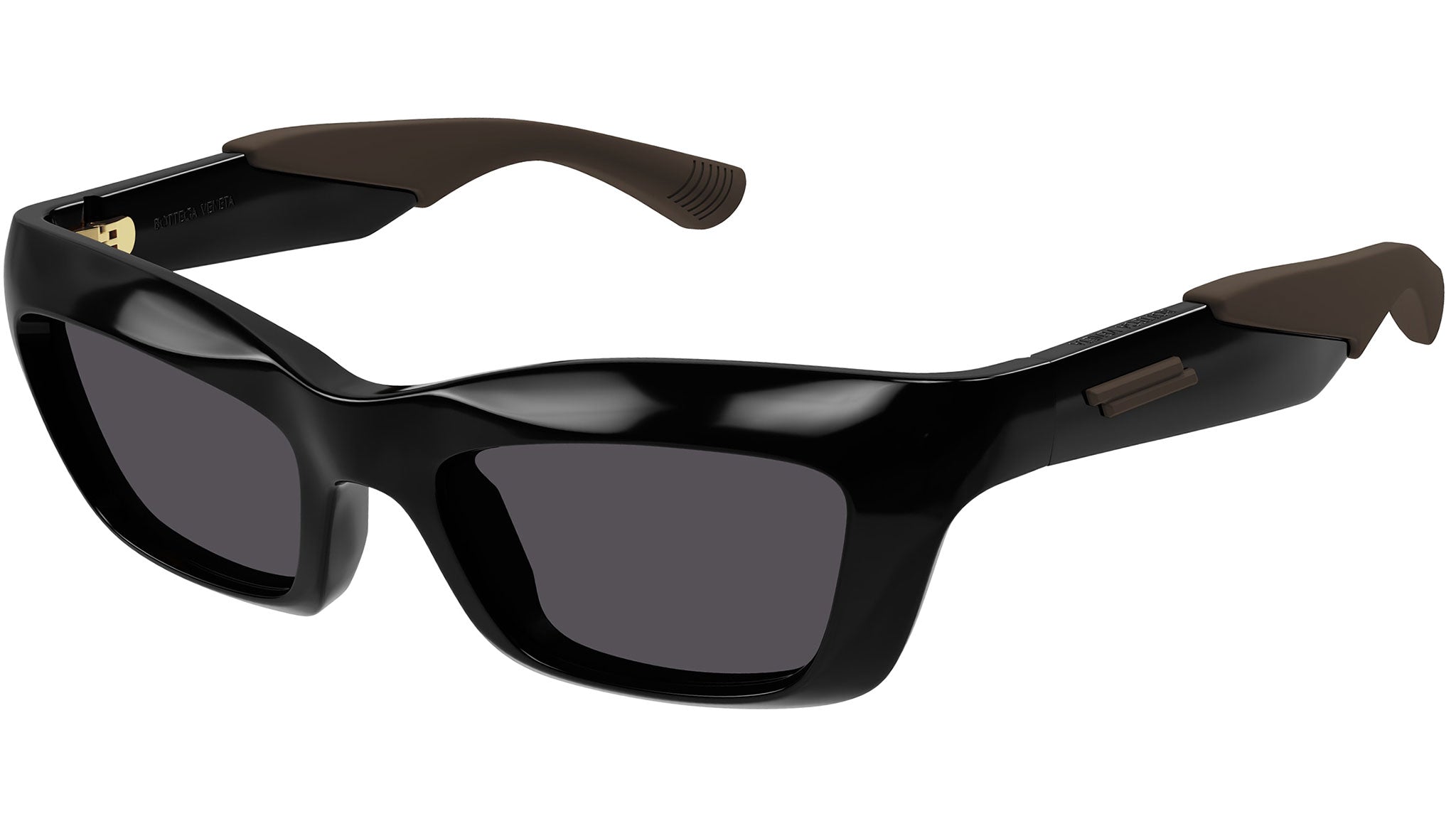 Occhiali da sole Bottega Veneta linea Unapologetic modello BV1182S variante colore 001 nero lucido con lenti color grigio tinta unita.