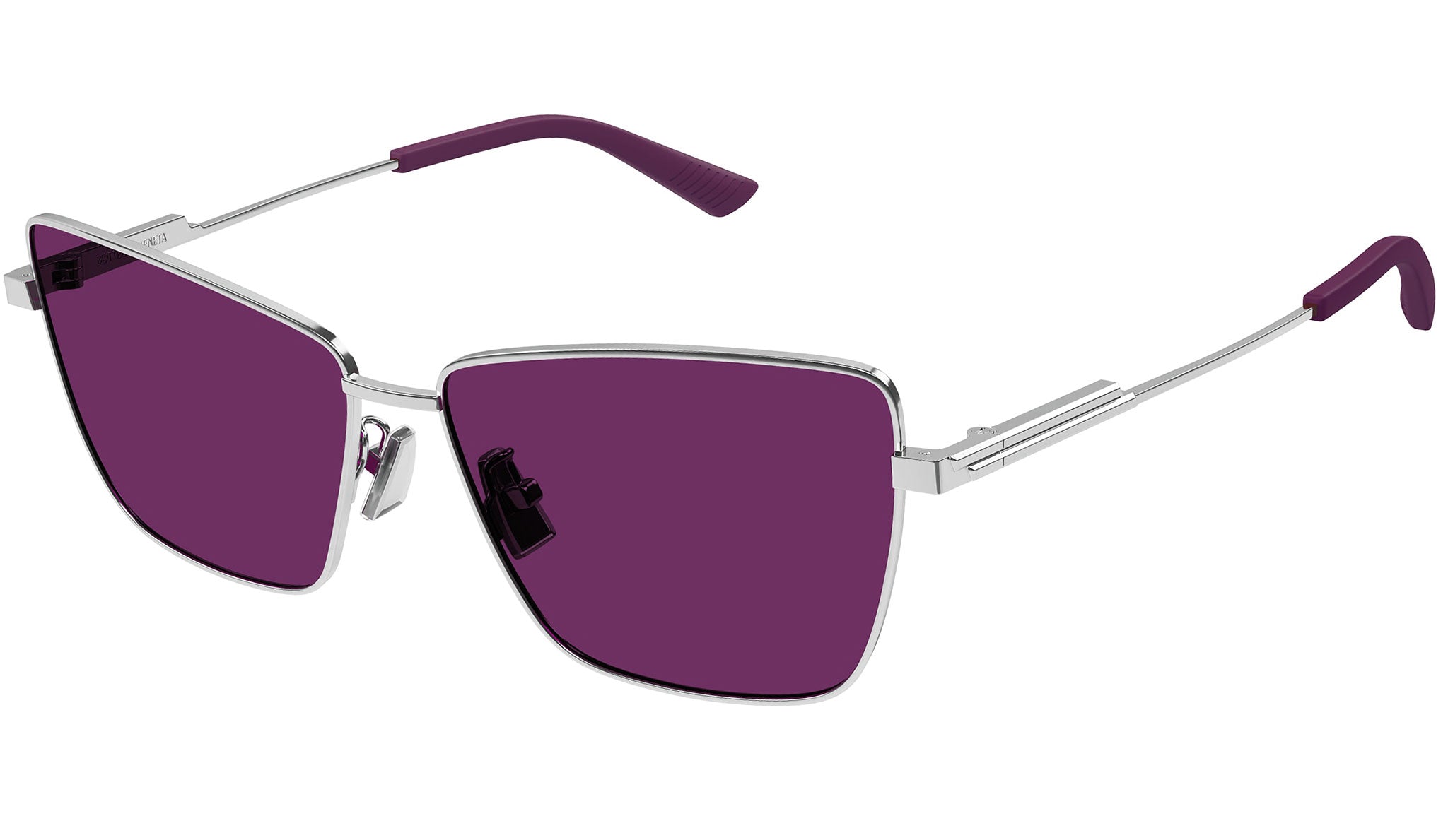 Occhiali da sole Bottega Veneta linea Minimalist modello BV1195S variante colore 003 argento lucido con lenti color borgogna tinta unita.