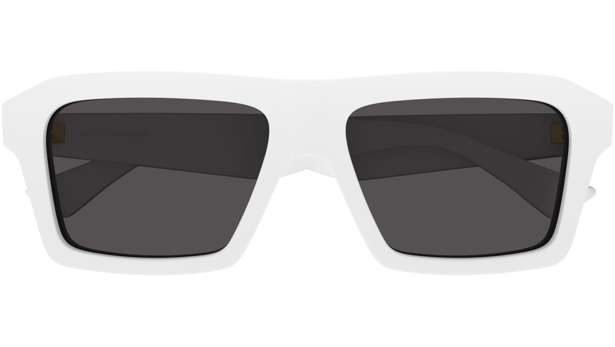 Occhiali da sole Bottega Veneta linea New Classic modello BV1213S variante colore 004 bianco tinta unita lucido con lenti color grigio tinta unita.