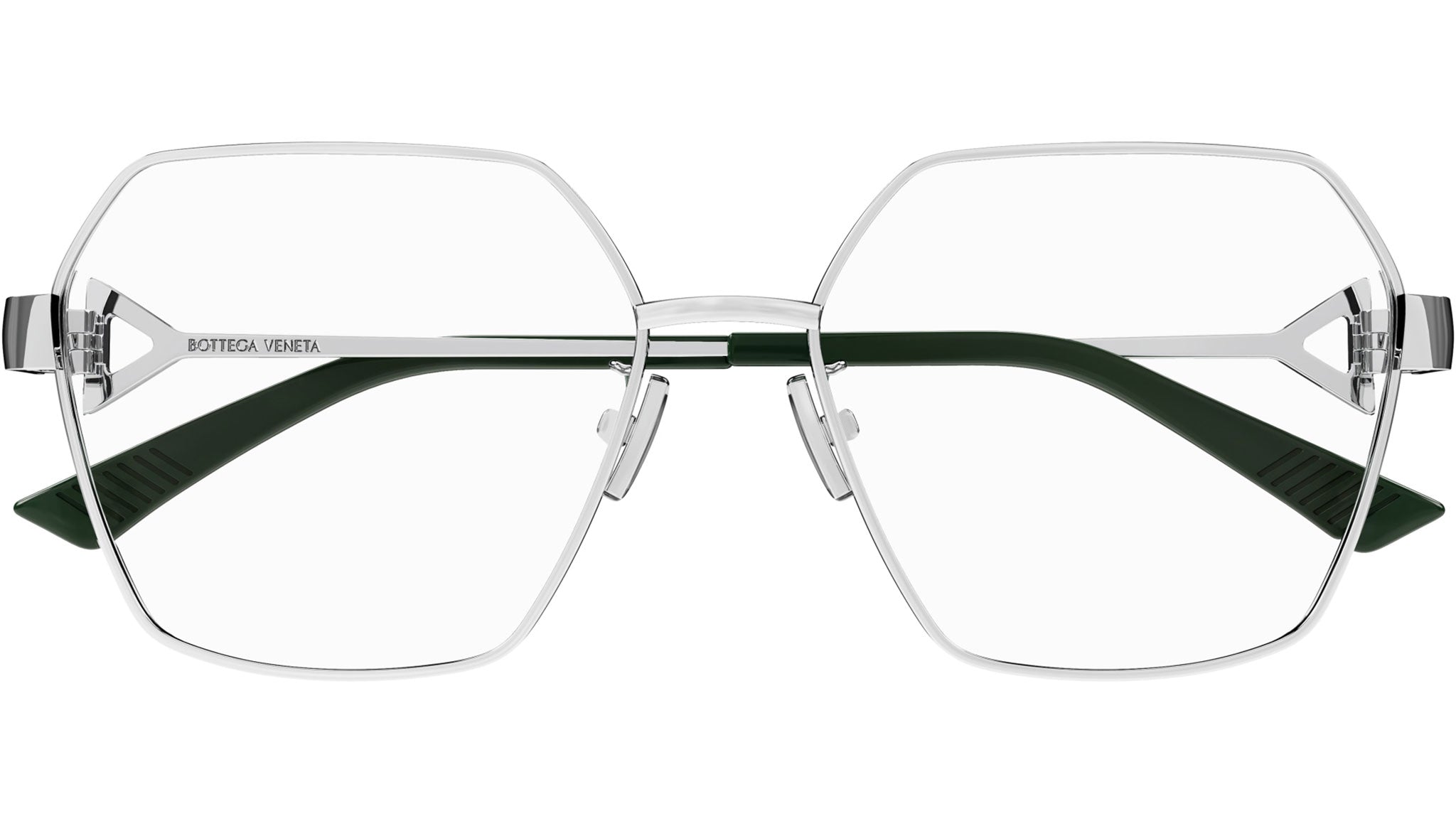 Occhiali da vista Bottega Veneta linea New Classic modello BV1224O variante colore 003 argento lucido con astine color argento.