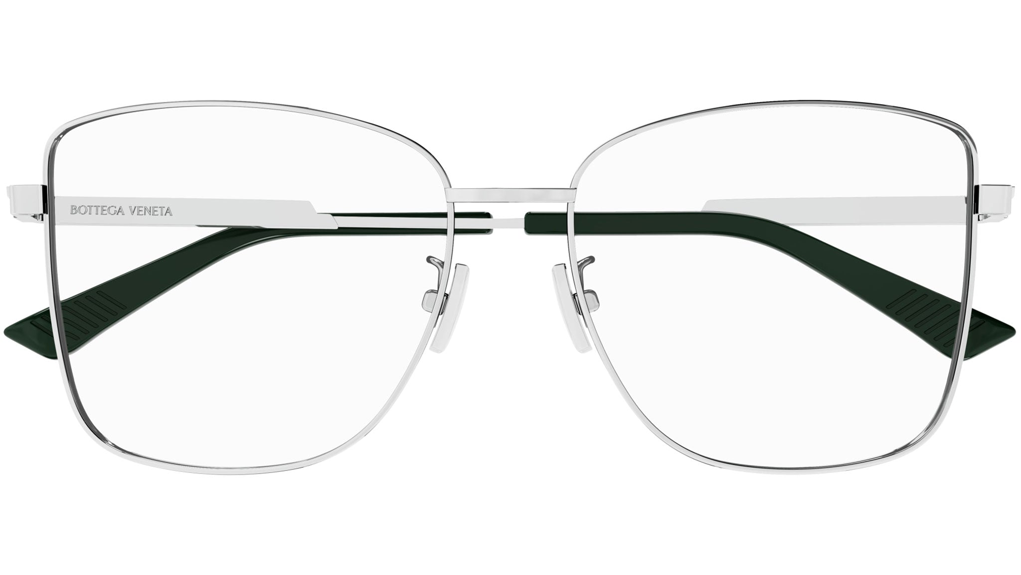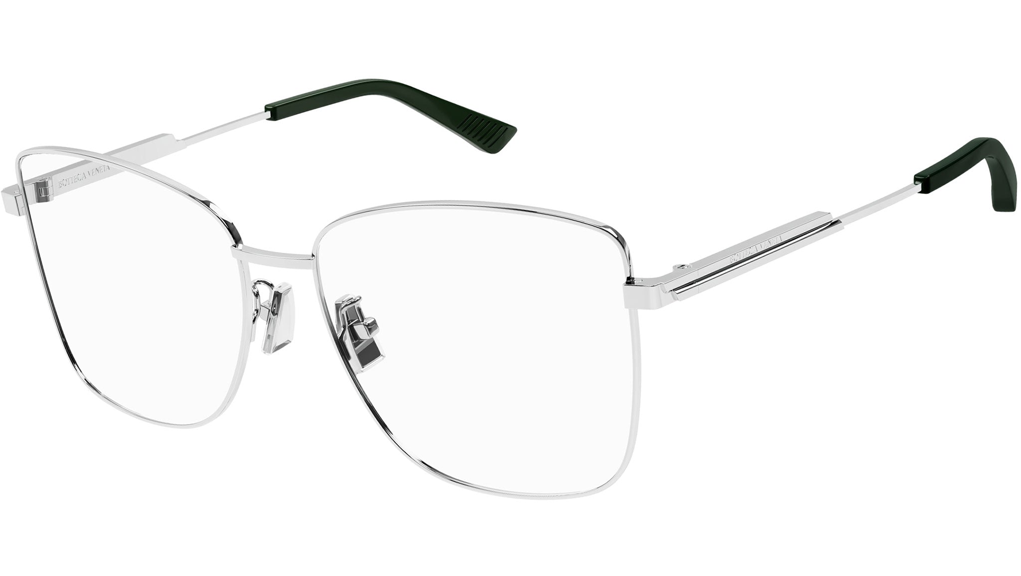Occhiali da vista Bottega Veneta linea Minimalist modello BV1238O 003 variante colore argento lucido con astine color argento.