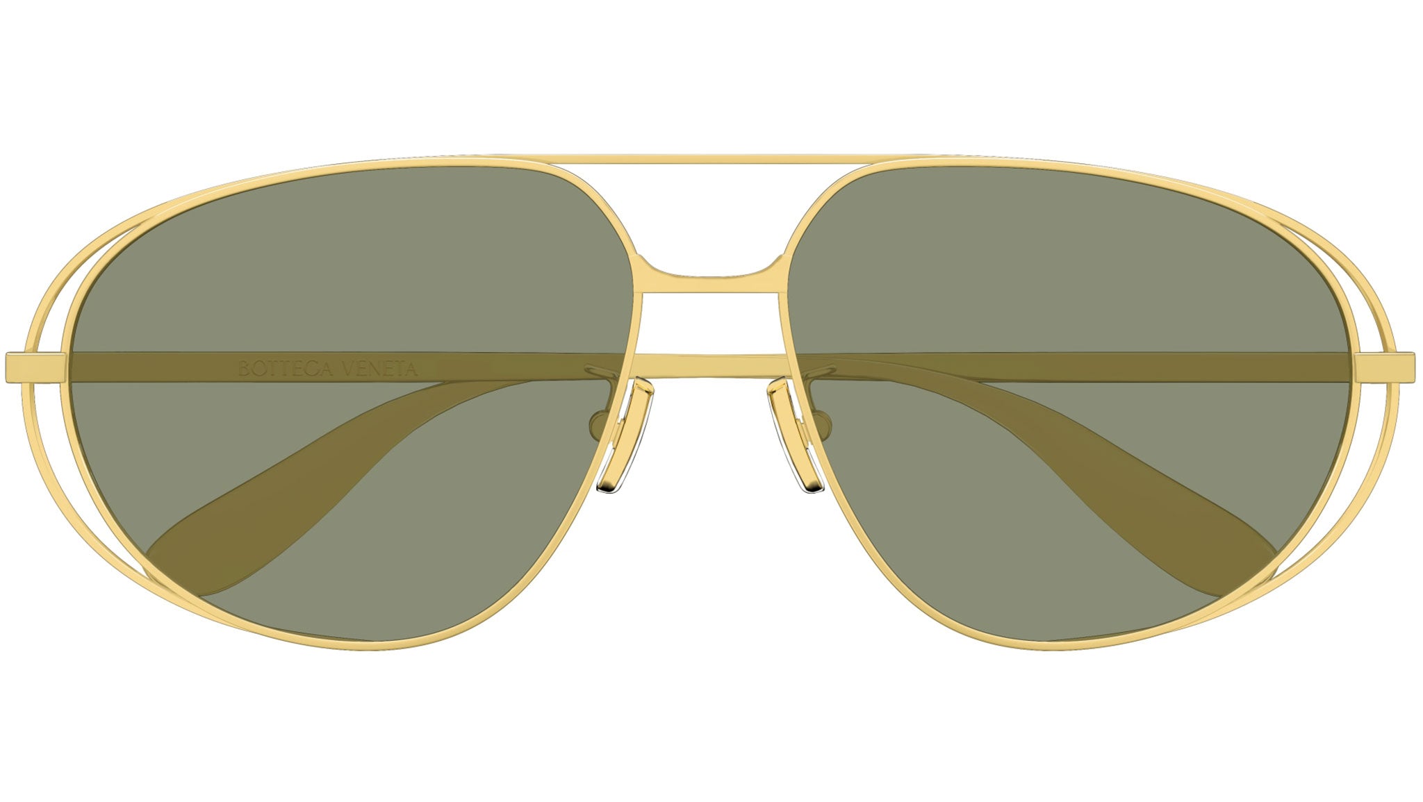 Occhiali da sole Bottega Veneta modello BV1344S in metallo forma aviatore codice colore 001 oro lucido con lenti color verde tinta unita. Rivenditore autorizzato Bottega Veneta online. Gli occhiali vengono consegnati con custodia e accessori originali e sono coperti dalla garanzia ufficiale di 12 mesi del produttore.
