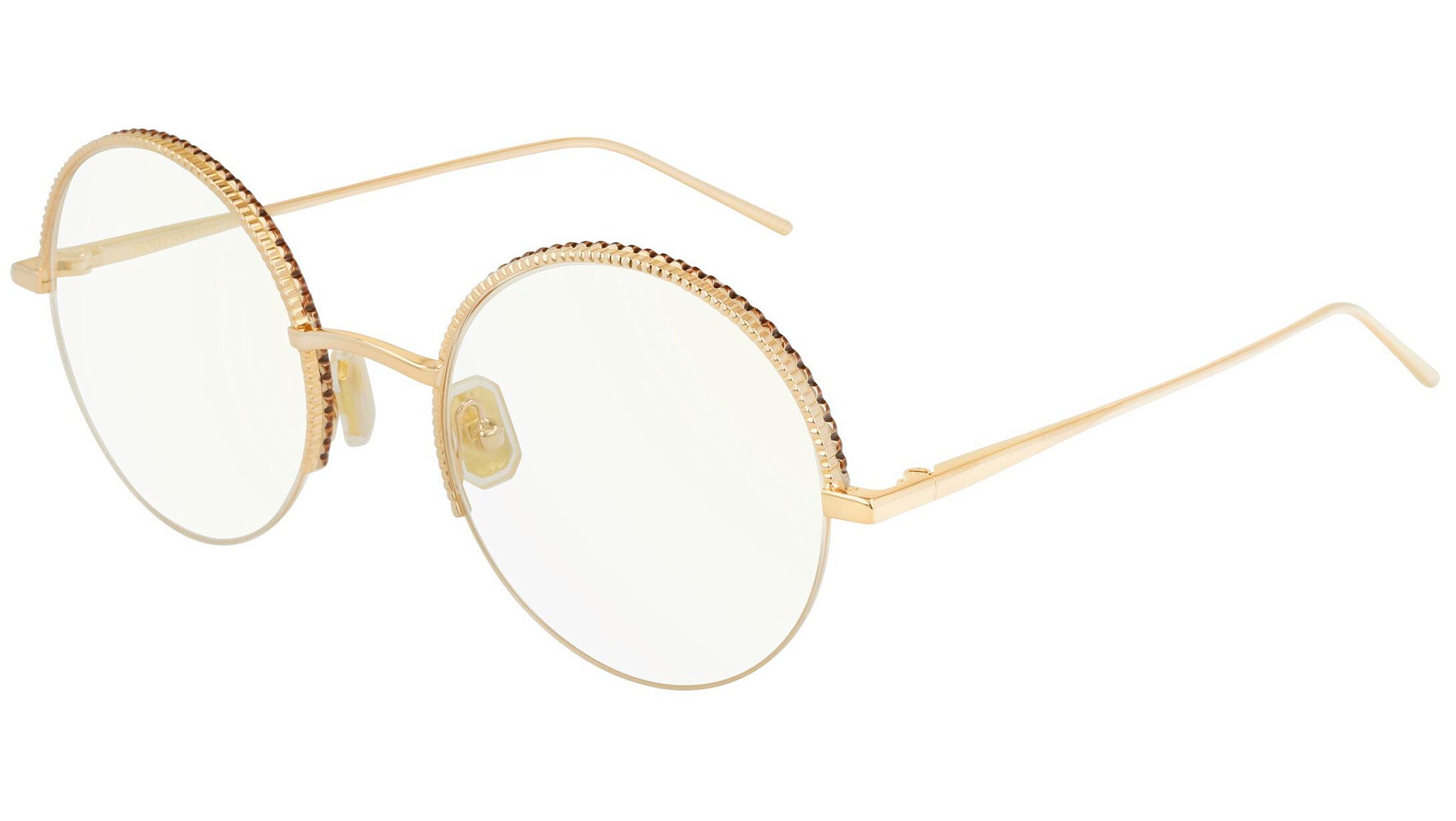 Occhiali da vista BC0076O 001 della collezione Boucheron Quatre con montatura oro rosso lucido e astine color oro.