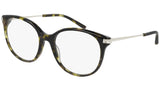 Occhiali da vista BC0102O 002 della collezione Boucheron Quatre con montatura tartaruga militare e astine color bianco.