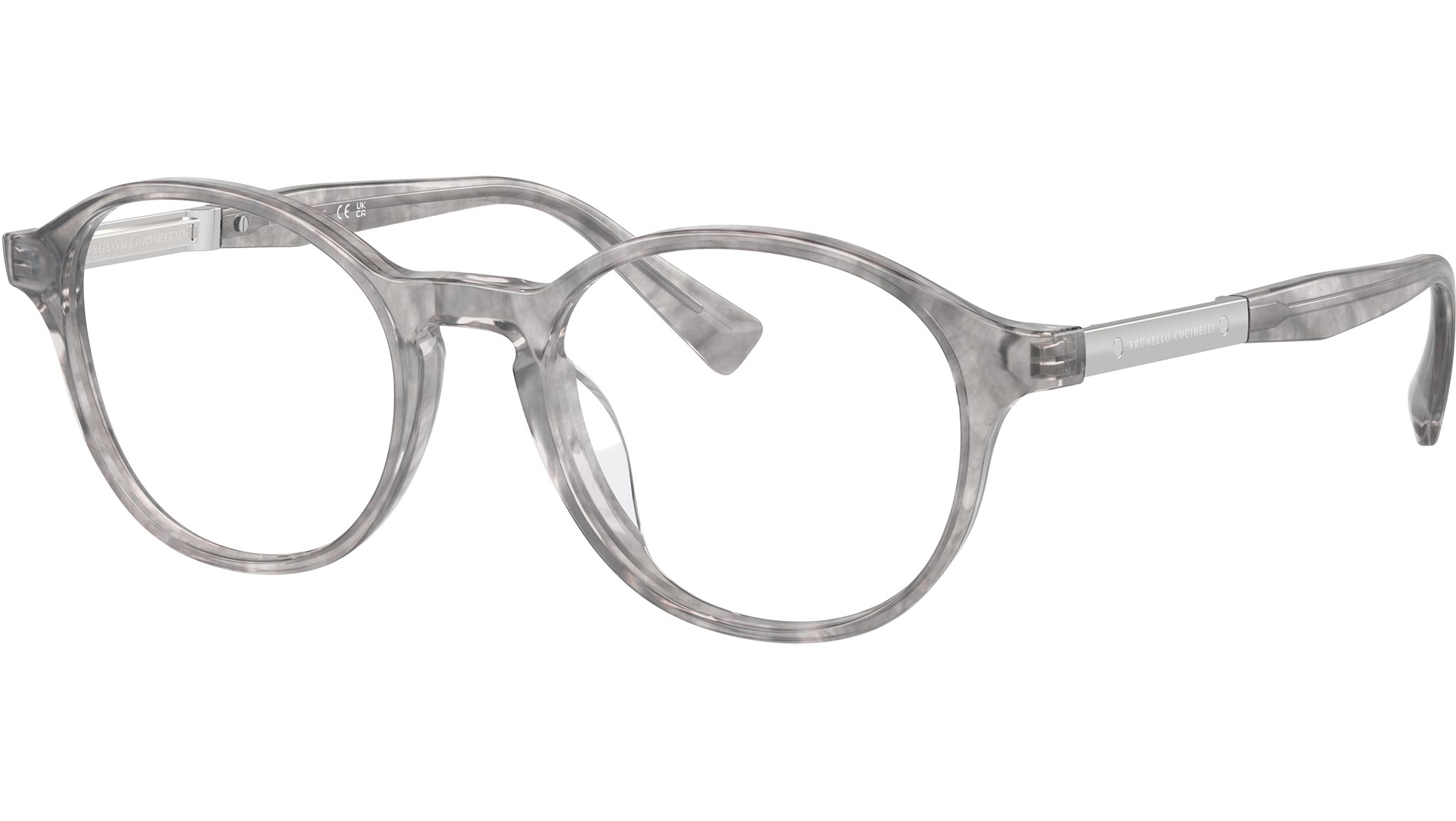 Occhiali da vista Brunello Cucinelli BC3002 codice colore 1010 con montatura full rim in acetato color cachemere grigio e lenti demo. Universal Fit. Questo modello Brunello Cucinelli della linea Solomeo è adatto per lenti graduate.