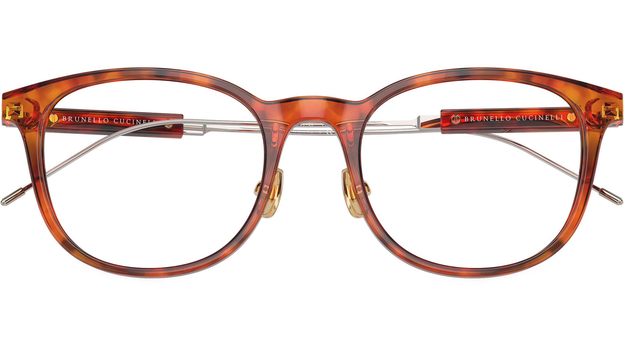 Occhiali da vista Brunello Cucinelli BC3006 codice colore 1011 con montatura full rim in acetato color avana ambra e lenti demo. Adjustable Nosepads. Questo modello Brunello Cucinelli della linea Opera è adatto per lenti graduate.